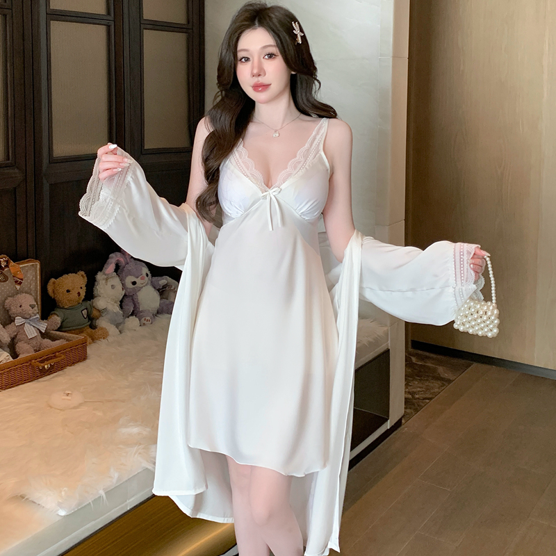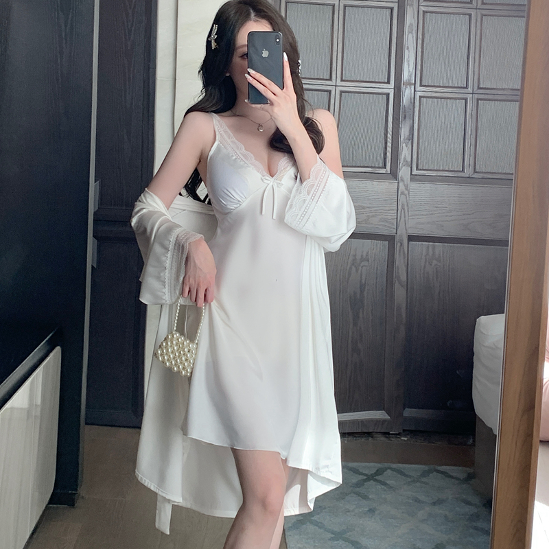 BY14874# 性感睡衣春夏吊带睡裙睡袍两件套缎面冰丝带胸垫高级感家居服 睡裙批发睡衣批发家居服批发