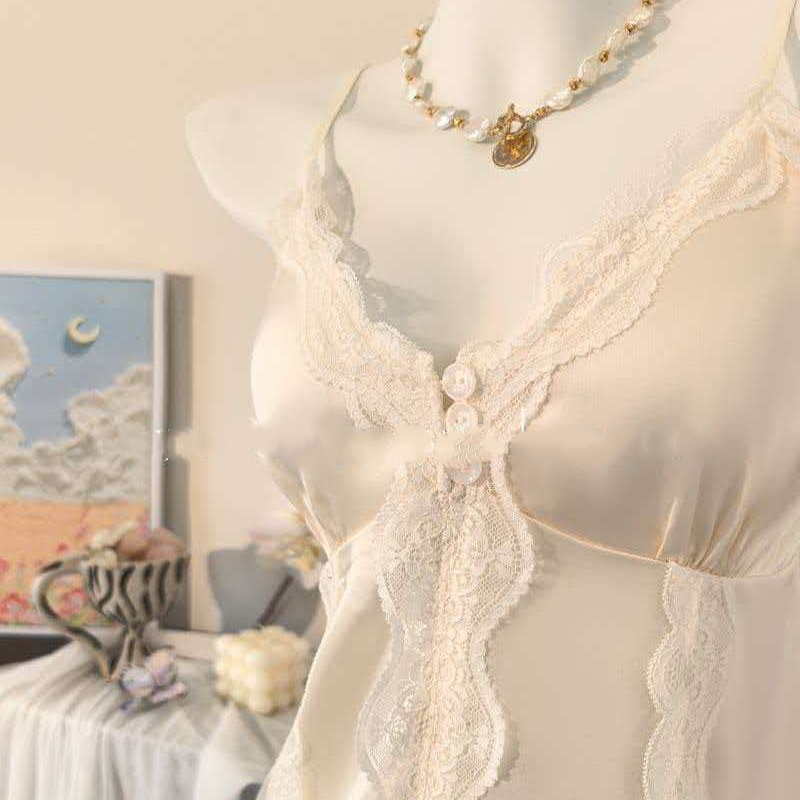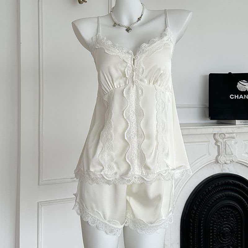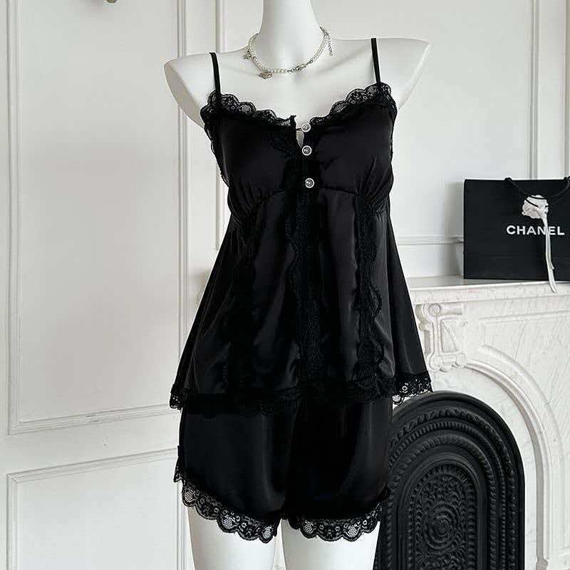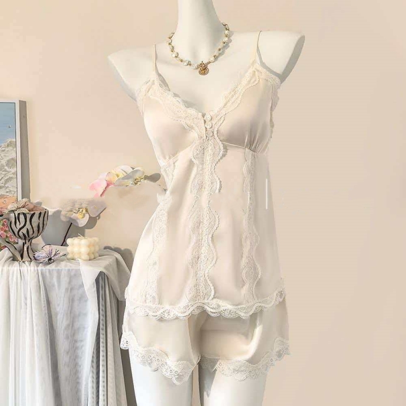 BY14887# 网图性感睡衣女冰丝吊带短裤套装蕾丝花边高级感轻奢带胸垫家居服 睡裙批发睡衣批发家居服批发
