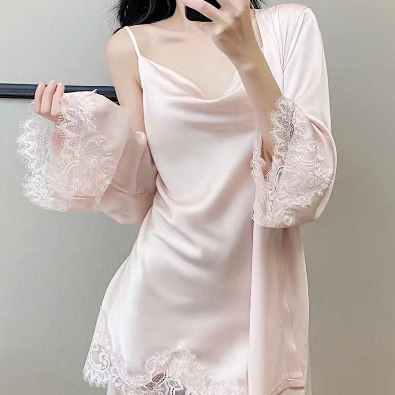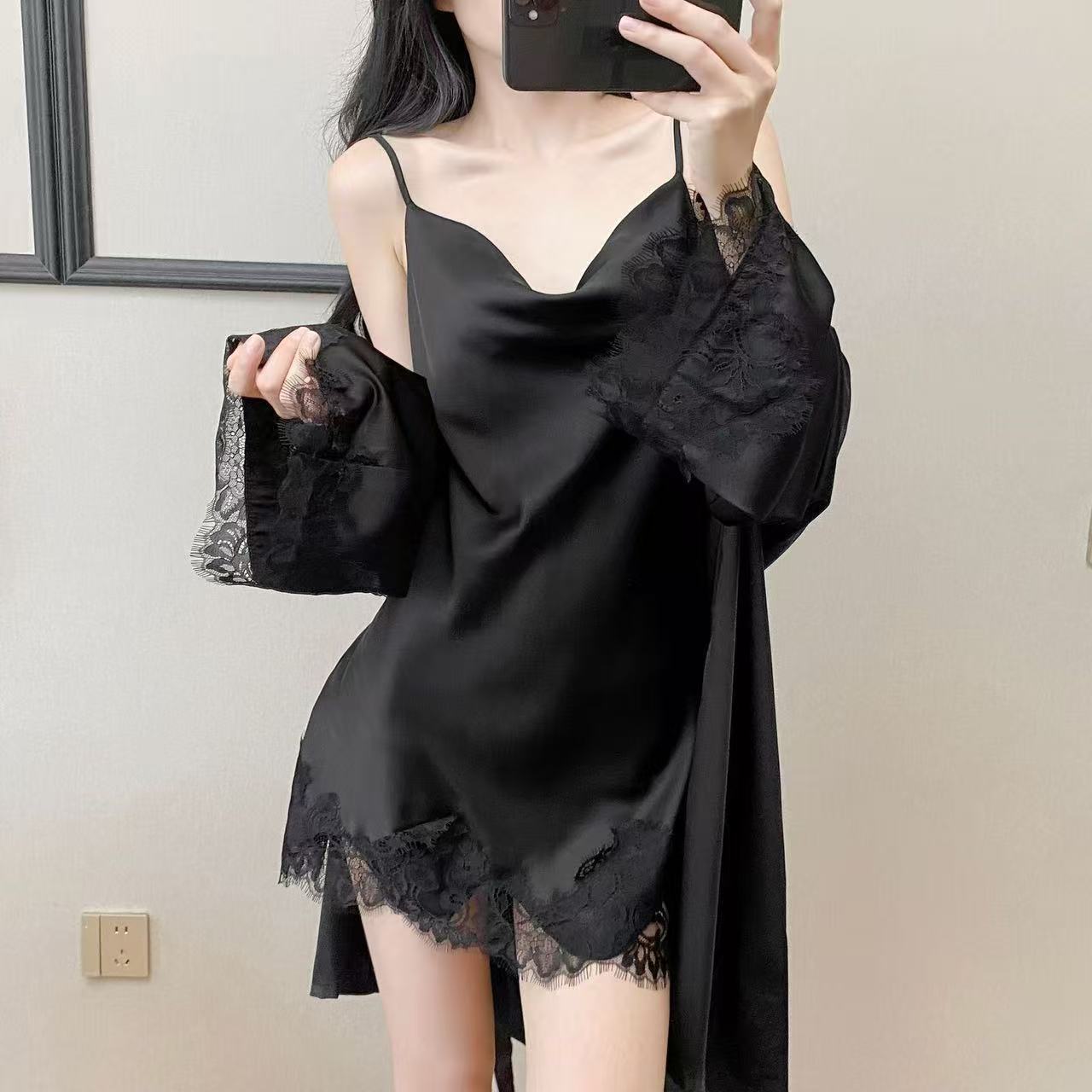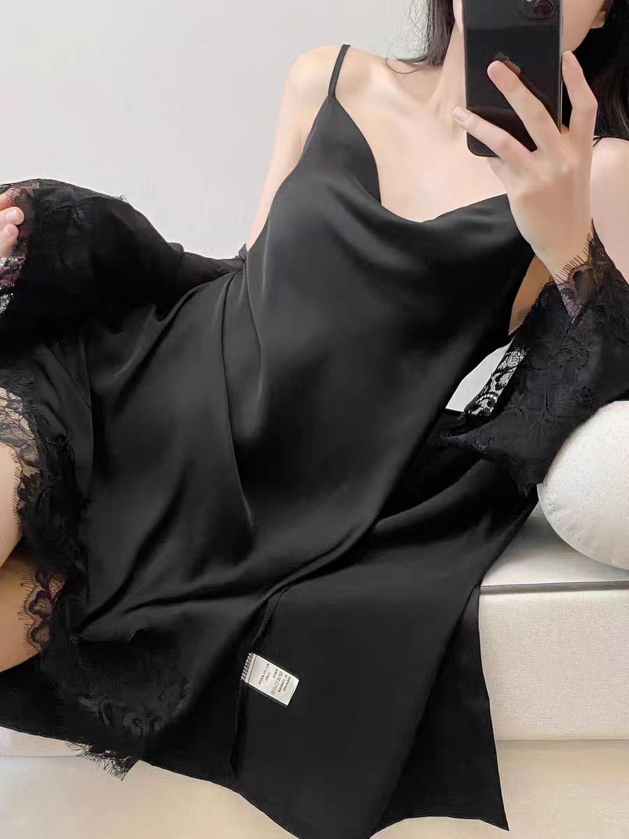 BY14888# 网图性感睡衣女冰丝吊带睡裙睡袍两件套装带胸垫荡领高级感家居服 睡裙批发睡衣批发家居服批发