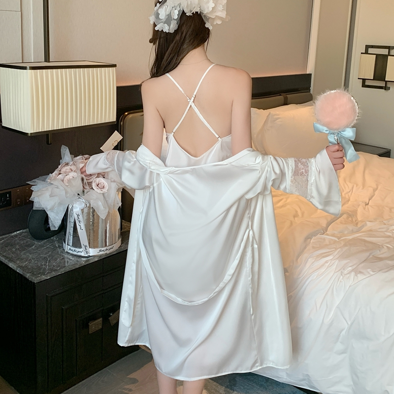 BY14915# 性感睡衣女冰丝吊带睡裙睡袍两件套蕾丝高级感带胸垫家居服 睡裙批发睡衣批发家居服批发