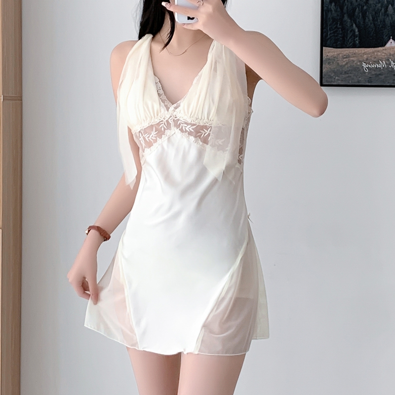 BY14918# 性感睡衣女缎面冰丝吊带睡裙蕾丝花边带胸垫高级感气质家居服 睡裙批发睡衣批发家居服批发