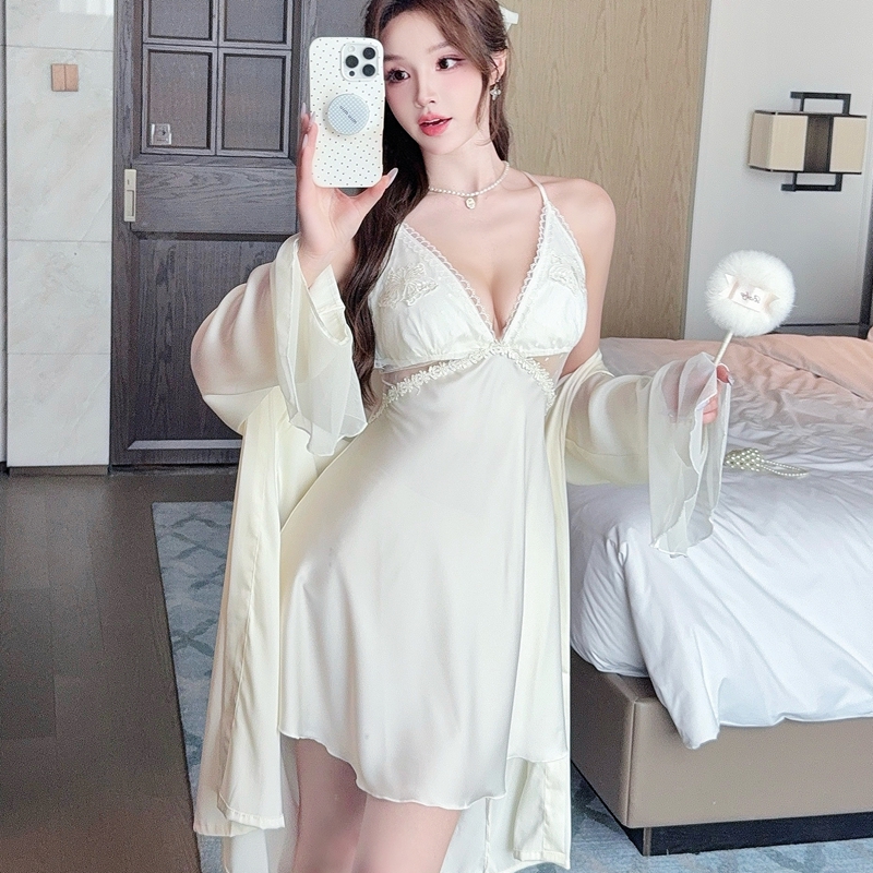 BY14922# 性感睡衣女冰丝吊带睡裙睡袍套装蕾丝刺绣高级感带胸垫家居服 睡裙批发睡衣批发家居服批发