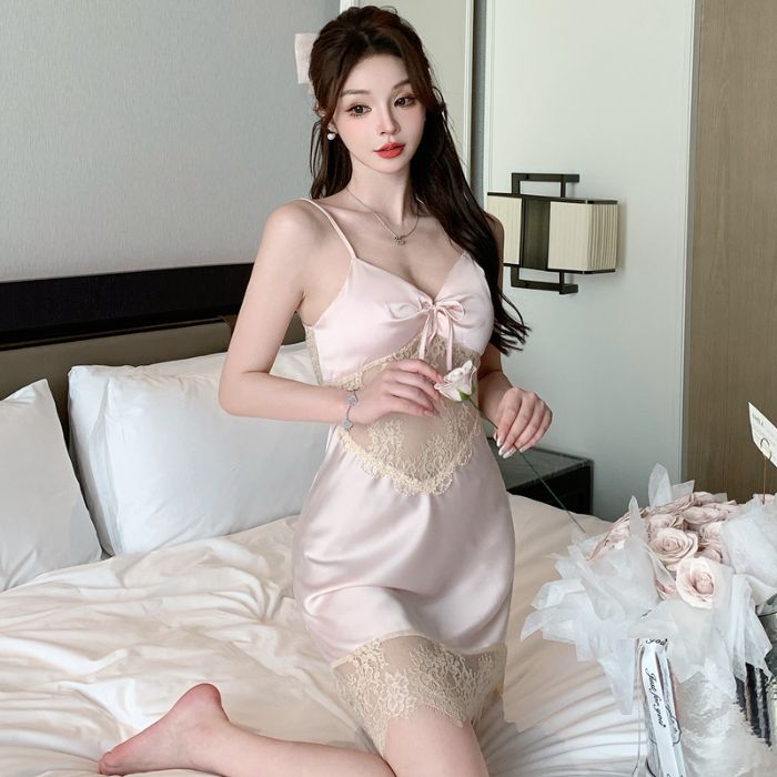 BY14929# 性感睡衣缎面冰丝吊带睡裙蕾丝美背高级感纯欲风带胸垫家居服 睡裙批发睡衣批发家居服批发