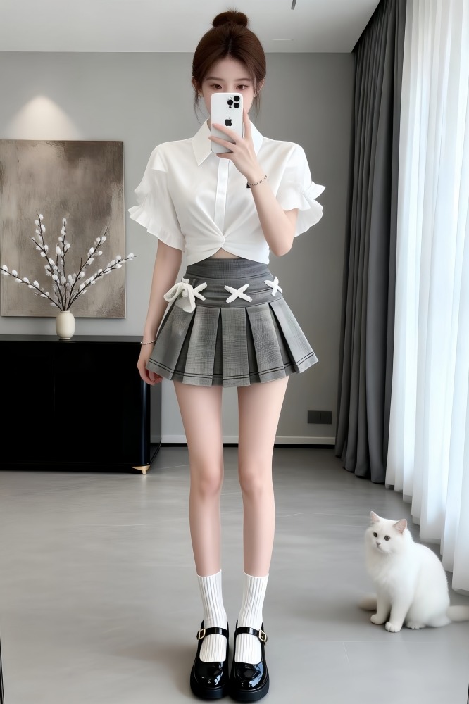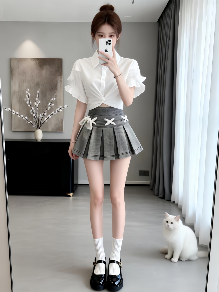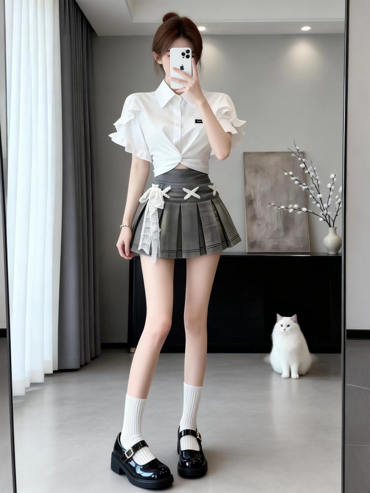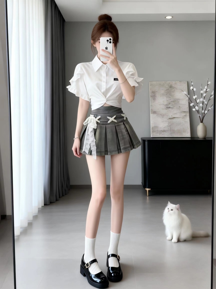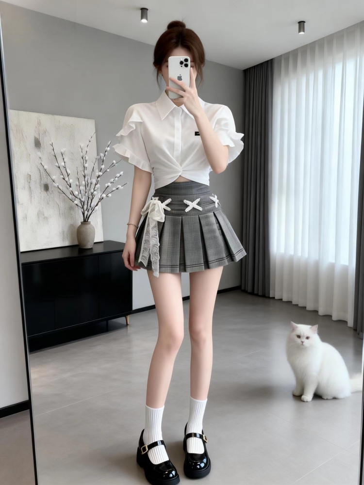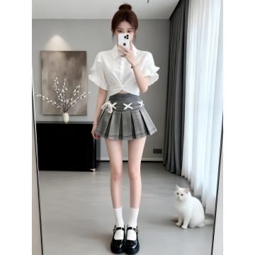 BY15804# 夏季新款韩系辣妹简约白色Polo领短袖衬衫牛仔半身裙两件套女 服裝批發女裝批發服飾貨源