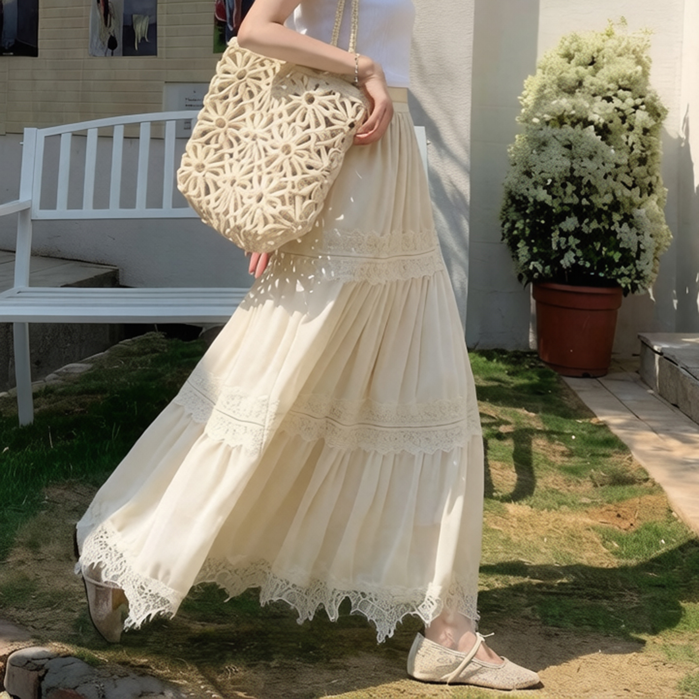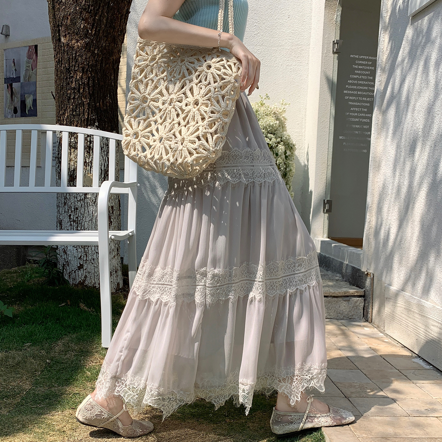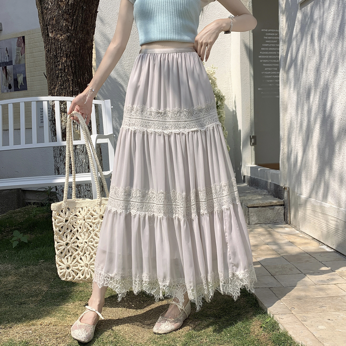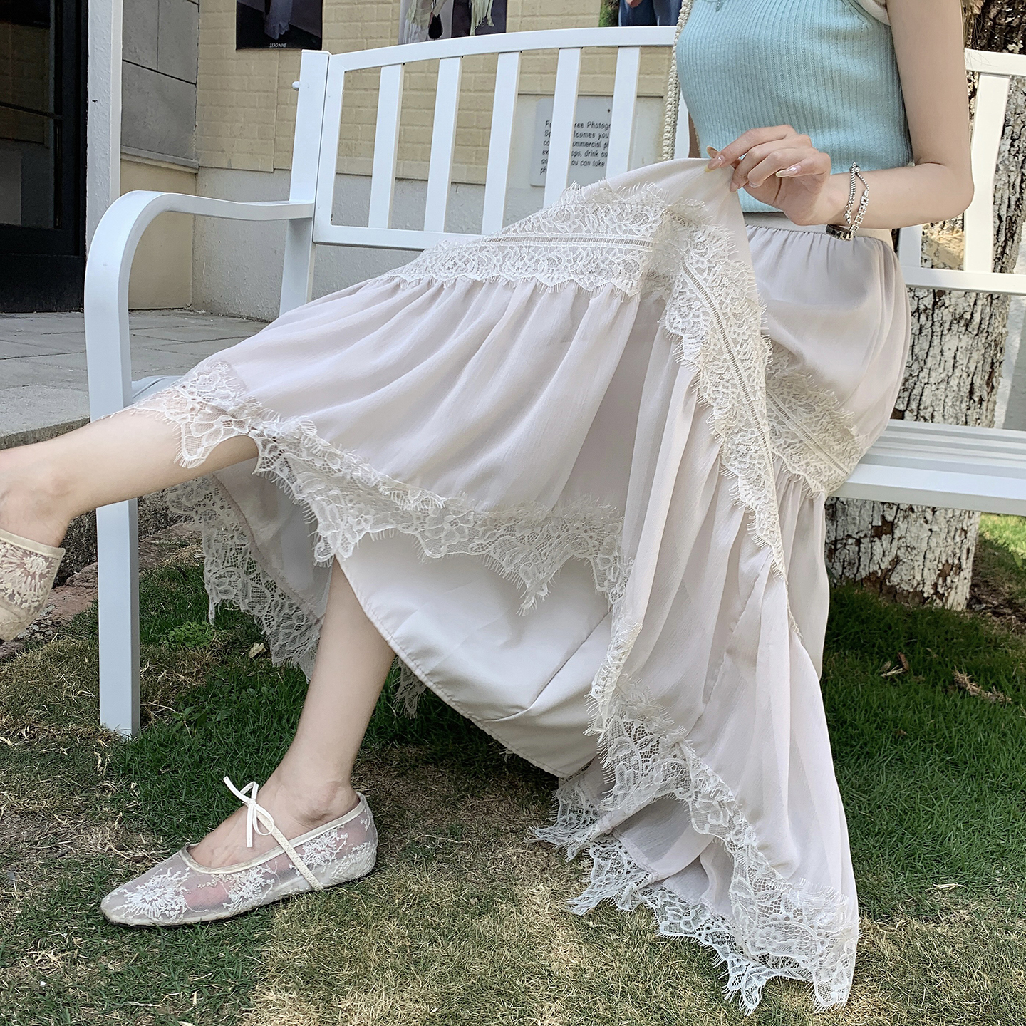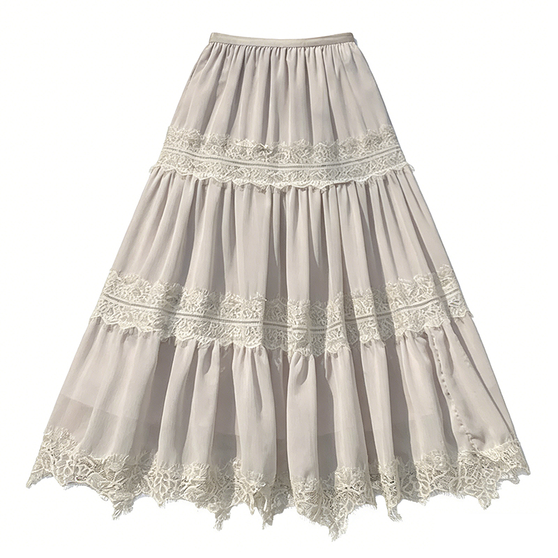 BY15842# 法式气质蕾丝拼接半身裙女春夏新款温柔风显瘦A字长裙子 服裝批發女裝批發服飾貨源