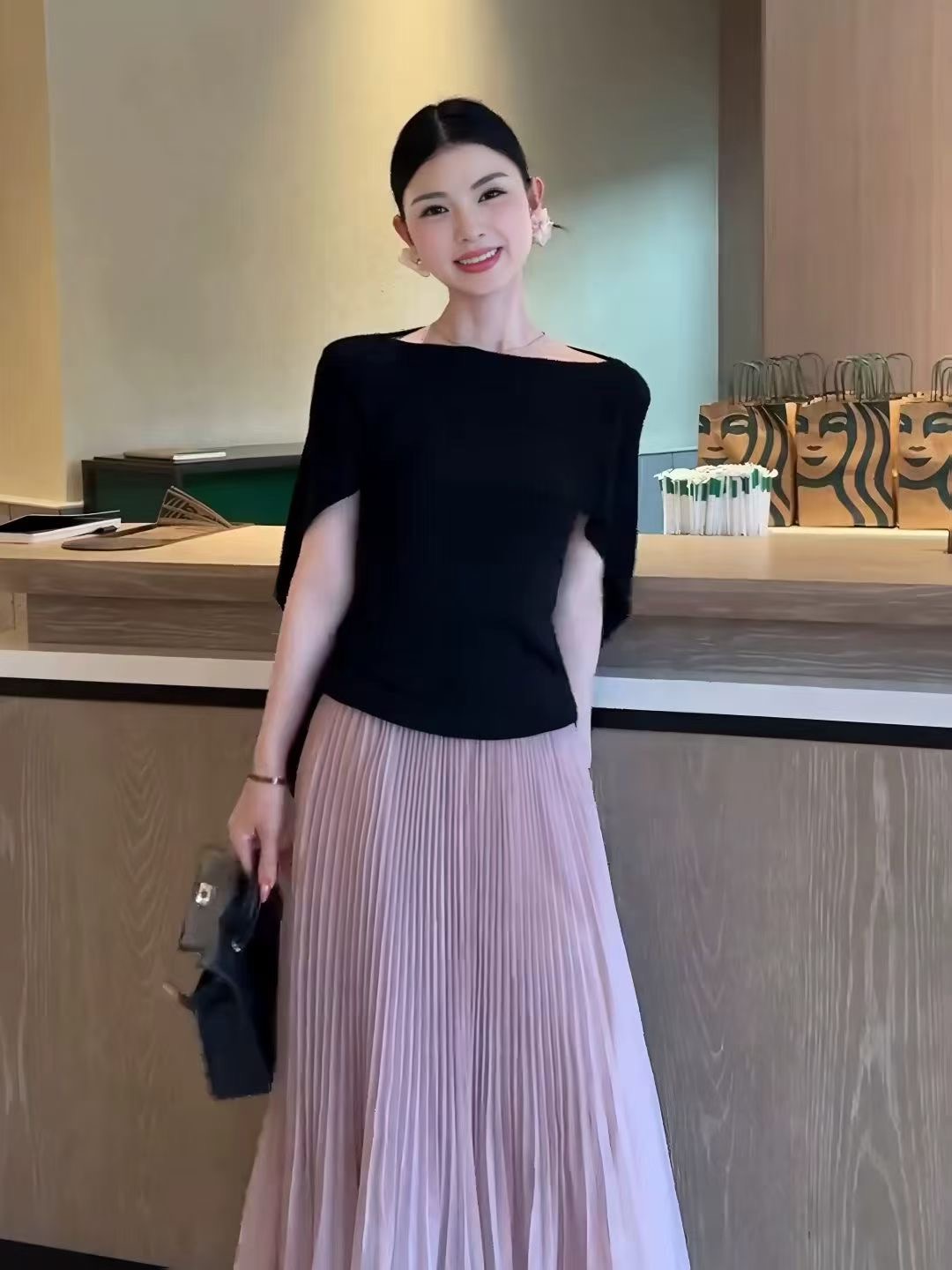Home > 韩版套装 > BY15845# 温柔绮梦夏季韩系女神斗篷设计感显瘦冰感气质时尚上衣+半裙 服裝批發女裝批發服飾貨源