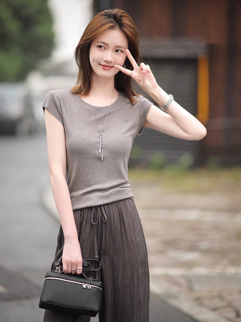 Home > 韩版套装 > BY15849# 大喜自制|轻呼吸T恤|慵懒风天丝短袖t恤夏季新款内搭上衣女 服裝批發女裝批發服飾貨源