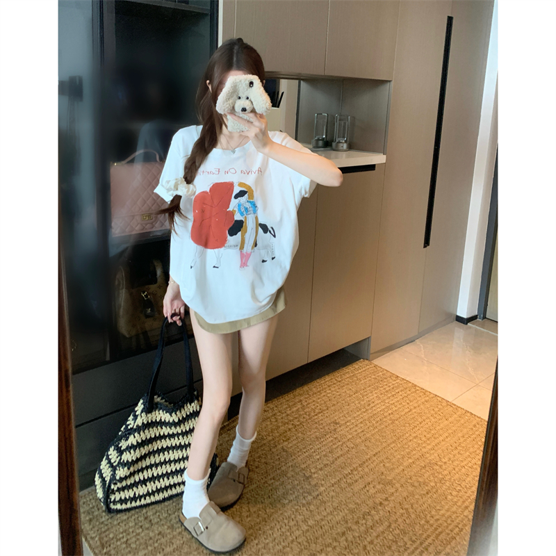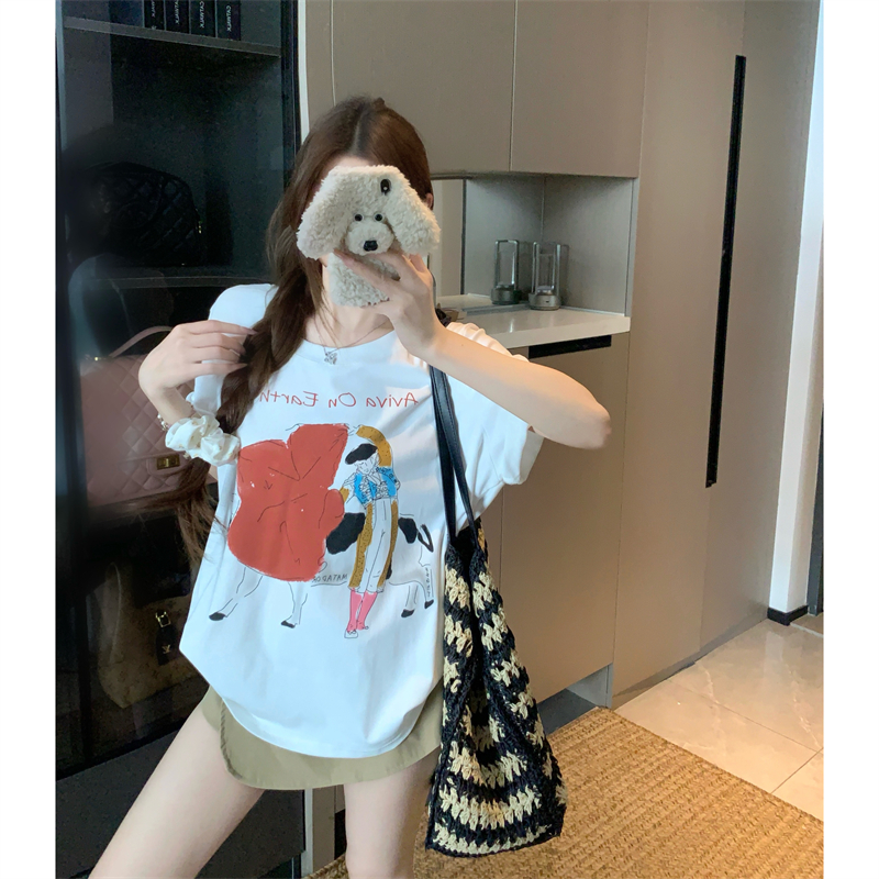 BY15889# 宽松版大码夏季胖mm正肩短袖趣味斗牛士印花纯棉宽松t恤女 服裝批發女裝批發服飾貨源