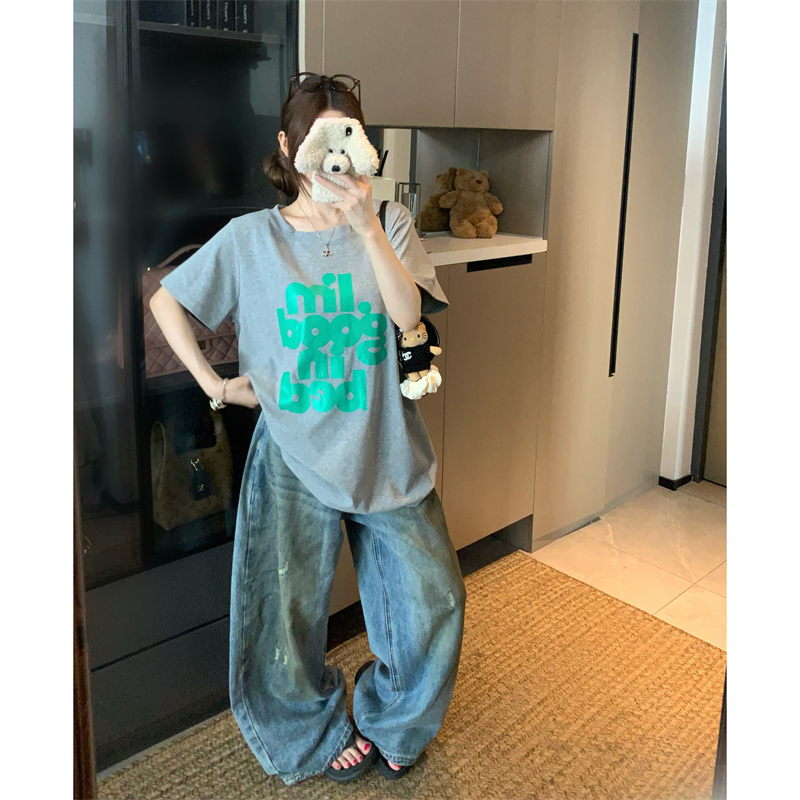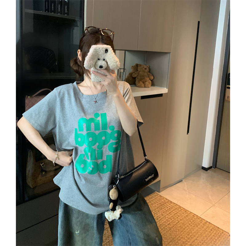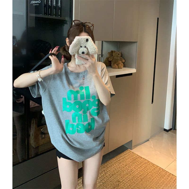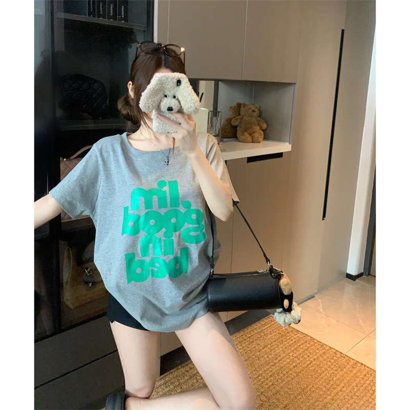BY15893# 韩国东大门夏季新款大码胖mm正肩百搭舒适t恤字母纯棉短袖女 服裝批發女裝批發服飾貨源
