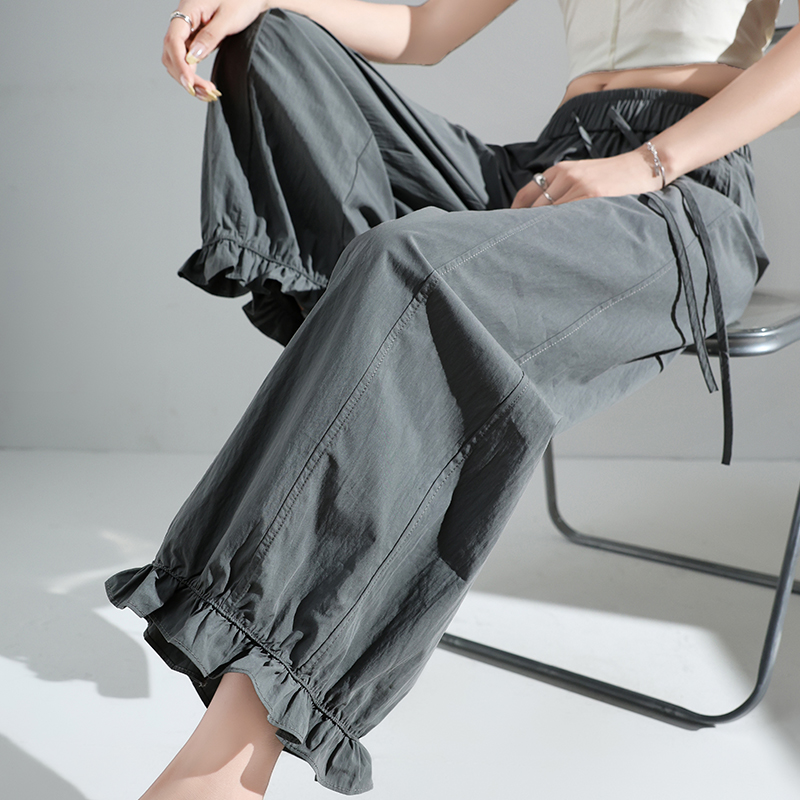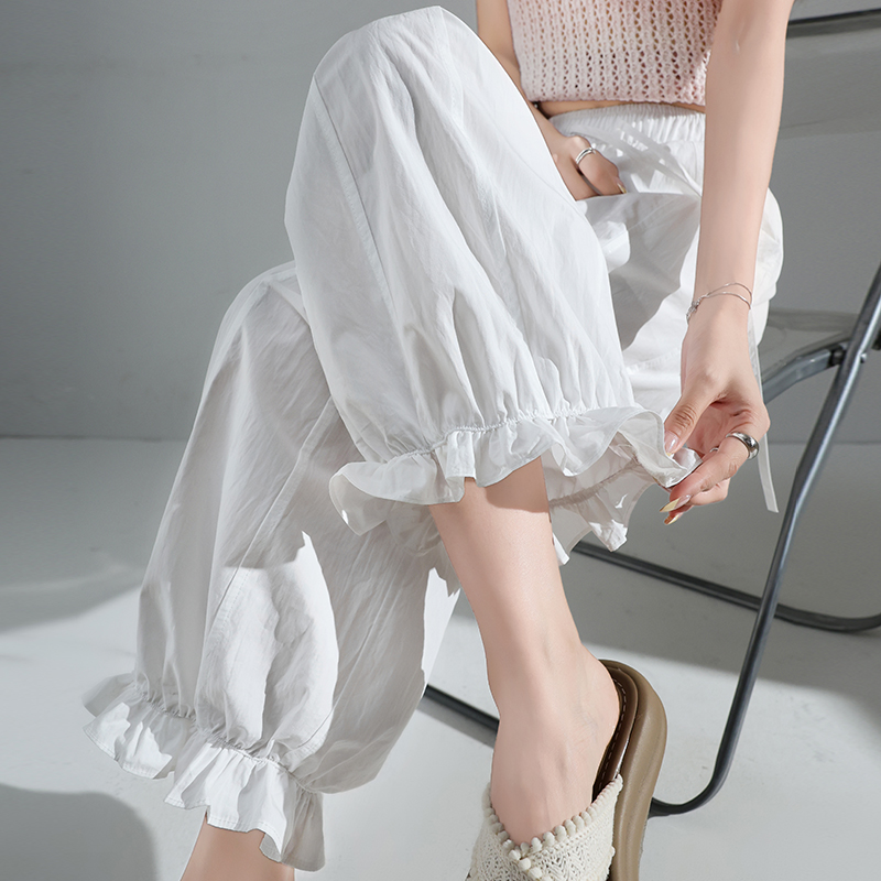 BY16271# 夏季新款时尚木耳花边裤脚九分裤宽松显瘦薄款休闲裤 服裝批發女裝批發服飾貨源