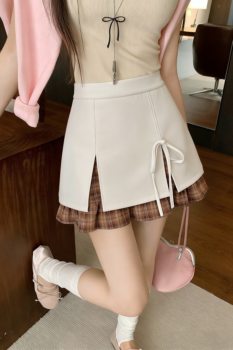 BY16424# 新款格子拼接开叉西装半身裙女复古显瘦时尚高腰A字短裙 服裝批發女裝批發服飾貨源