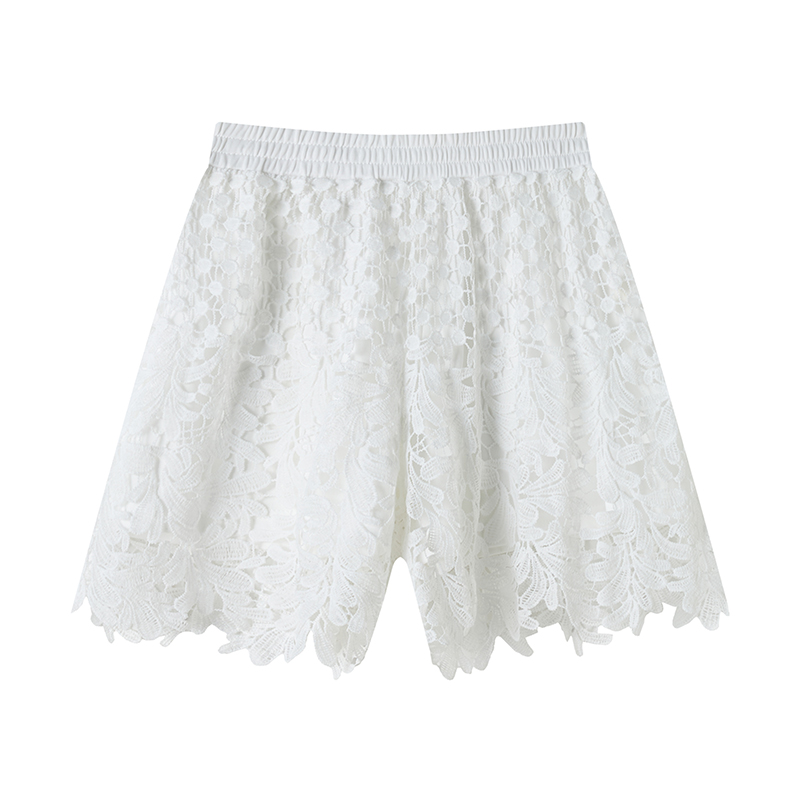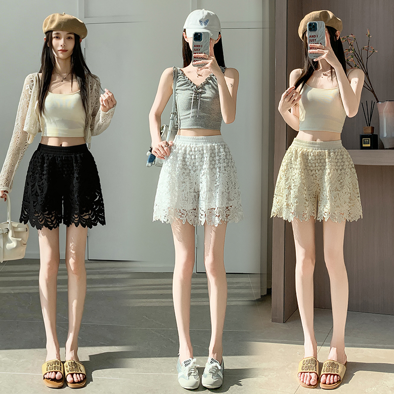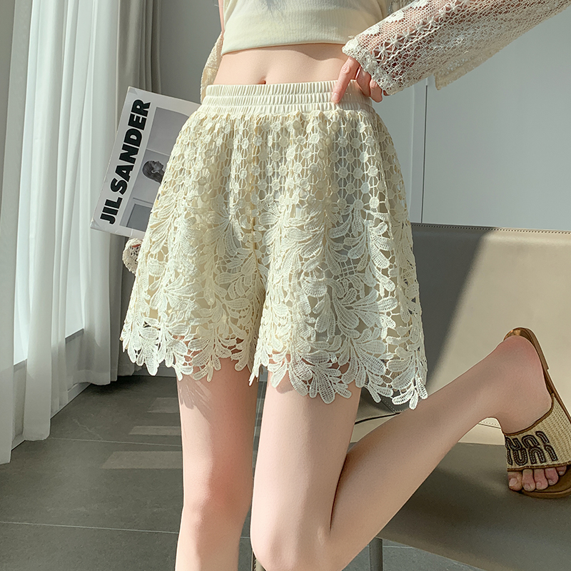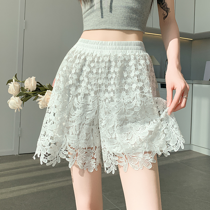 BY16494# 蕾丝镂空短裤女夏季薄款高腰显瘦宽松阔腿松紧腰a字外穿裤子 服裝批發女裝批發服飾貨源