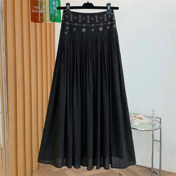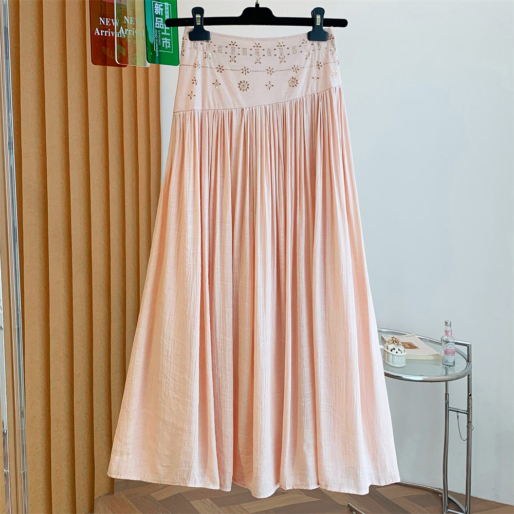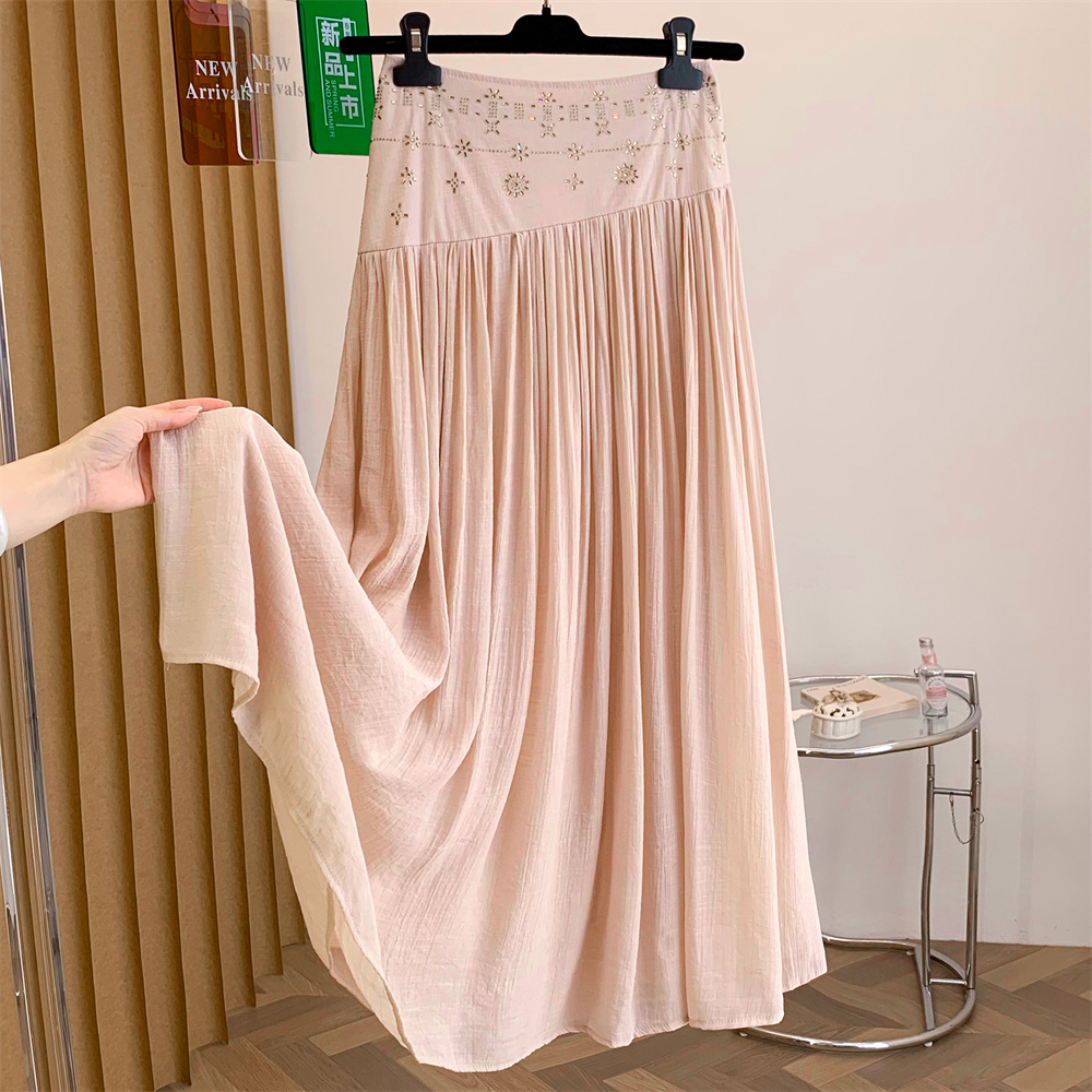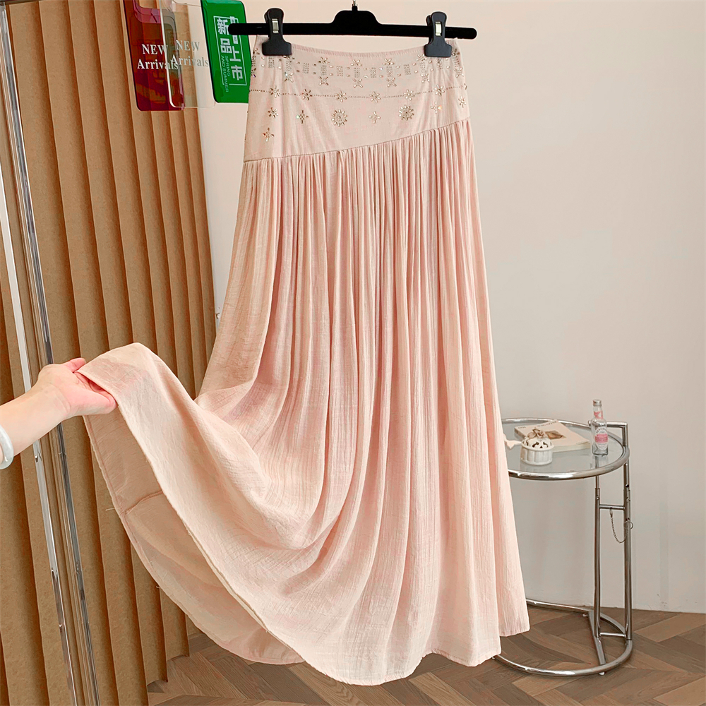 BY16501# ·文艺纯色百搭仙气感中长款裙子女时尚烫钻点缀显瘦半身裙 服裝批發女裝批發服飾貨源