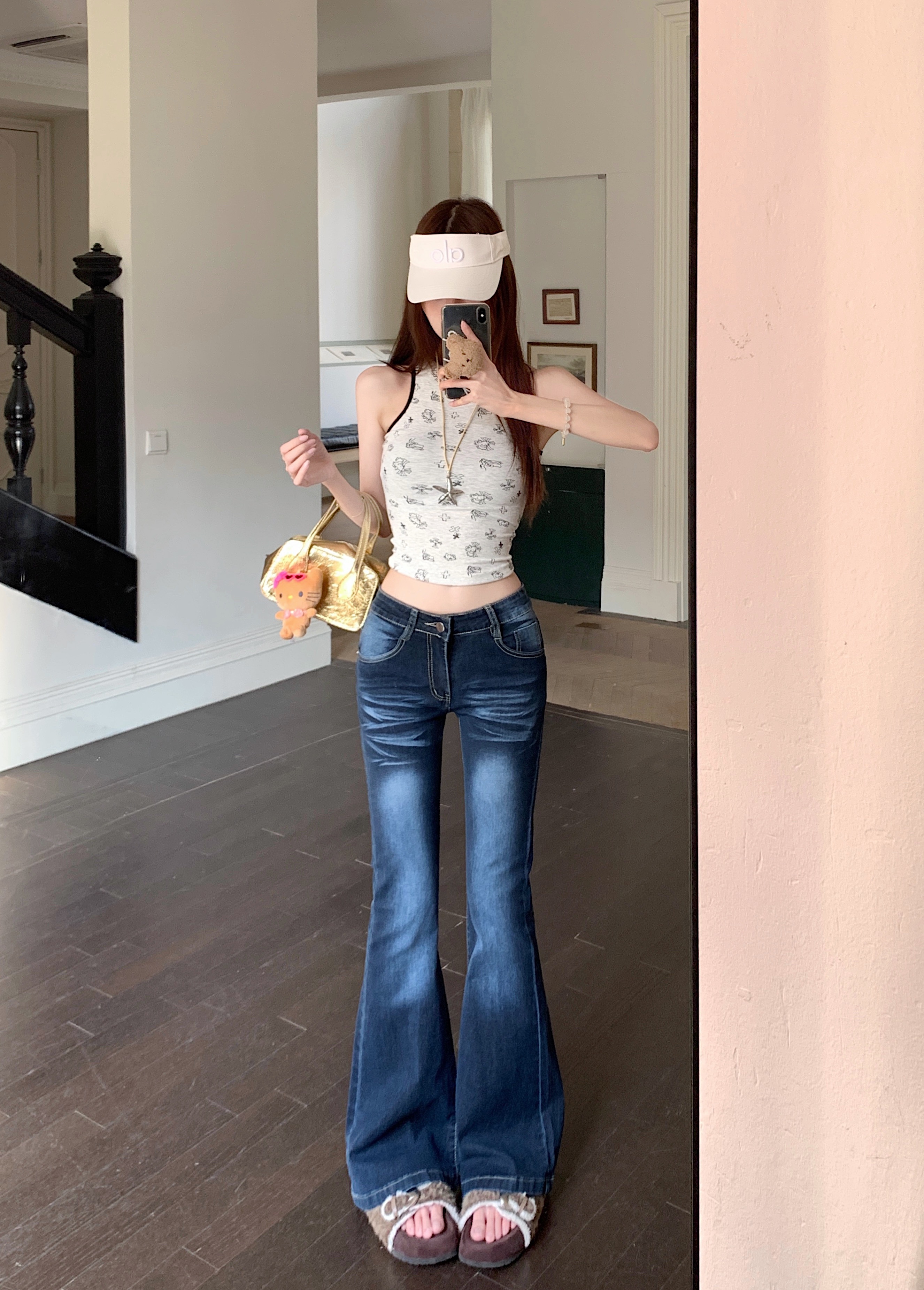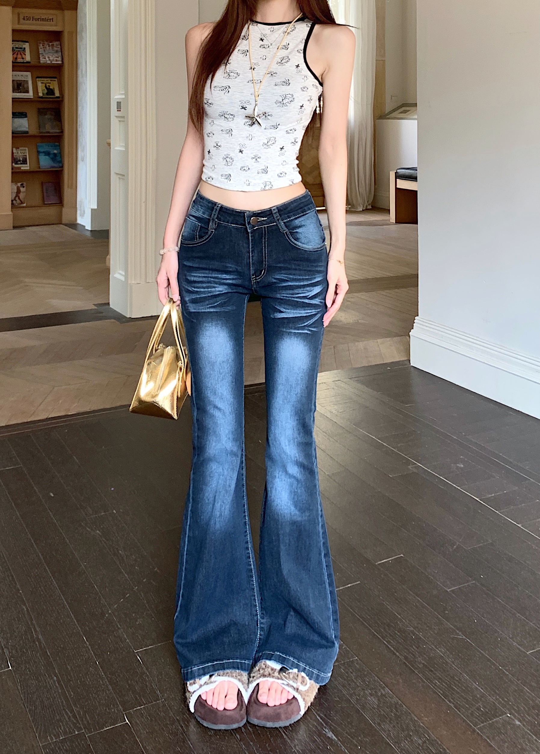 BY16520# 九分/长裤美式复古低腰微喇牛仔裤女弹力修身显瘦拖地马蹄裤 服裝批發女裝批發服飾貨源
