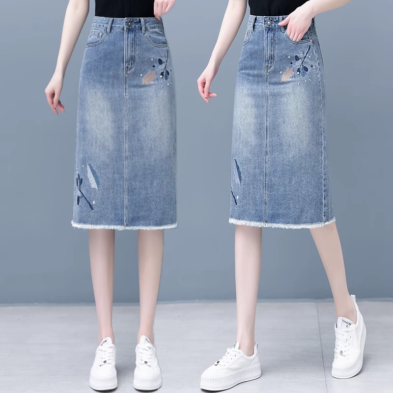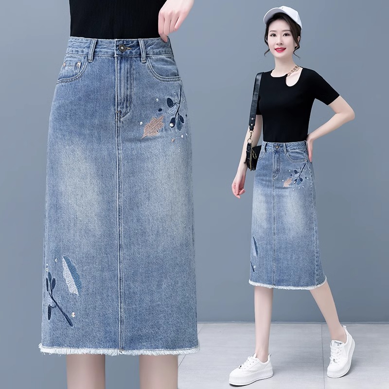 BY16521# 毛边牛仔半身裙女夏季新款高腰显瘦时尚中长款一步包臀裙子 服裝批發女裝批發服飾貨源