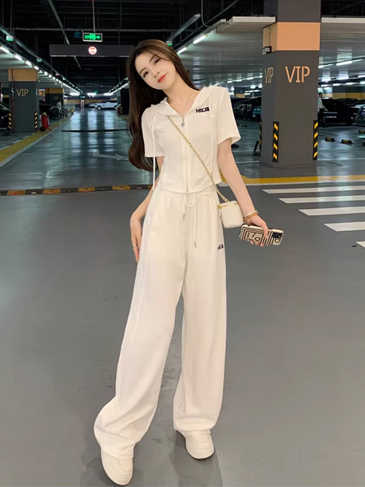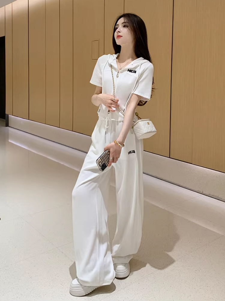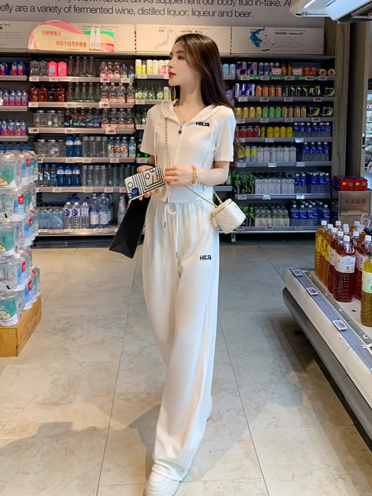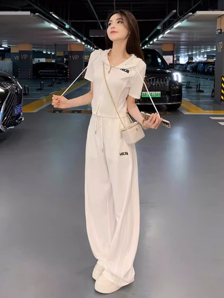 超火夏装一整套韩系减龄运动休闲高级感连帽短袖阔腿裤两件套 服裝批發女裝批發服飾貨源