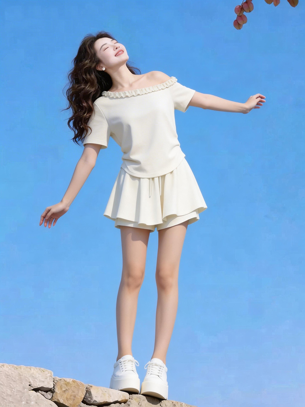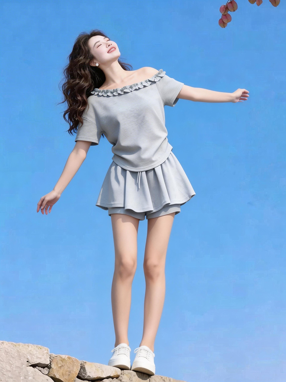 小个子独特绝美显高穿搭一整套女夏装斜肩短袖上衣半身裙两件套装 服裝批發女裝批發服飾貨源