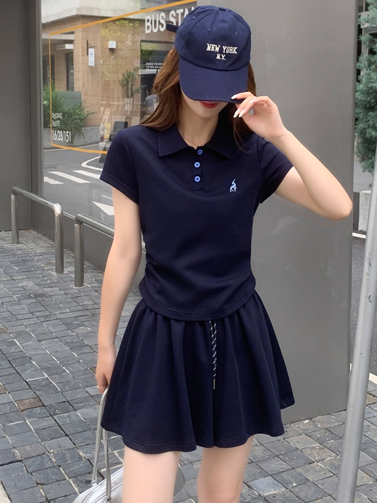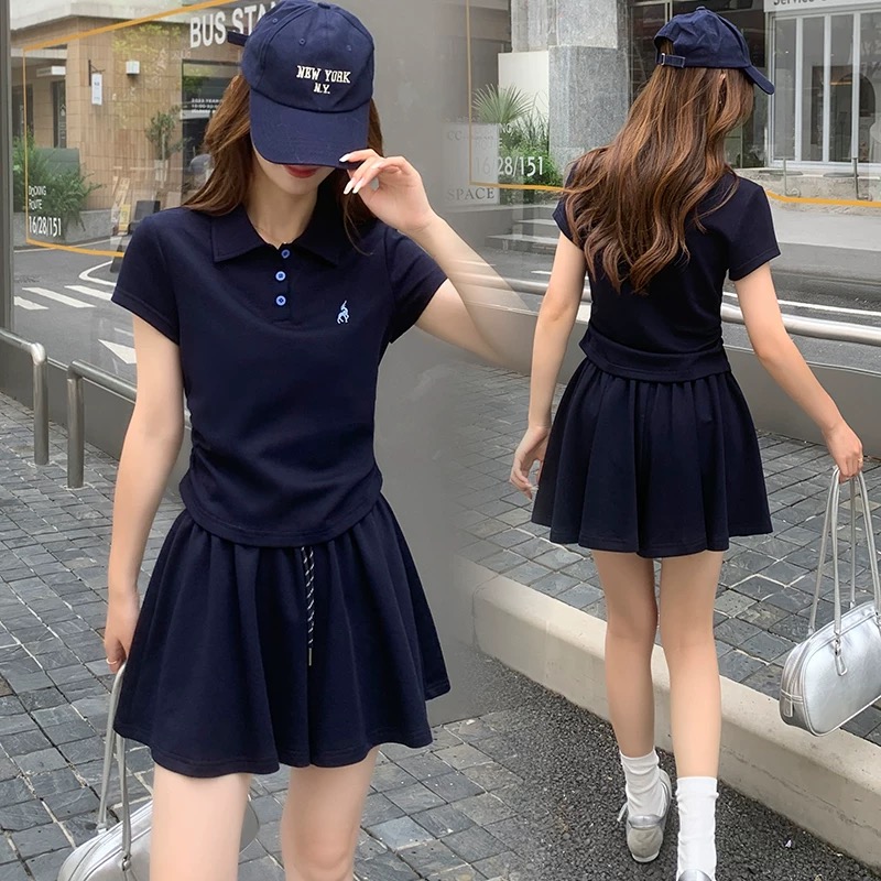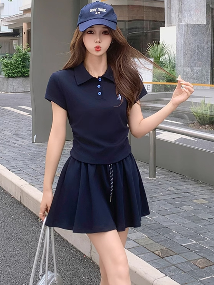 BY17067# 时尚休闲短裤裙套装女夏夏季新款洋气减龄polo衫短袖两件套 服裝批發女裝批發服飾貨源
