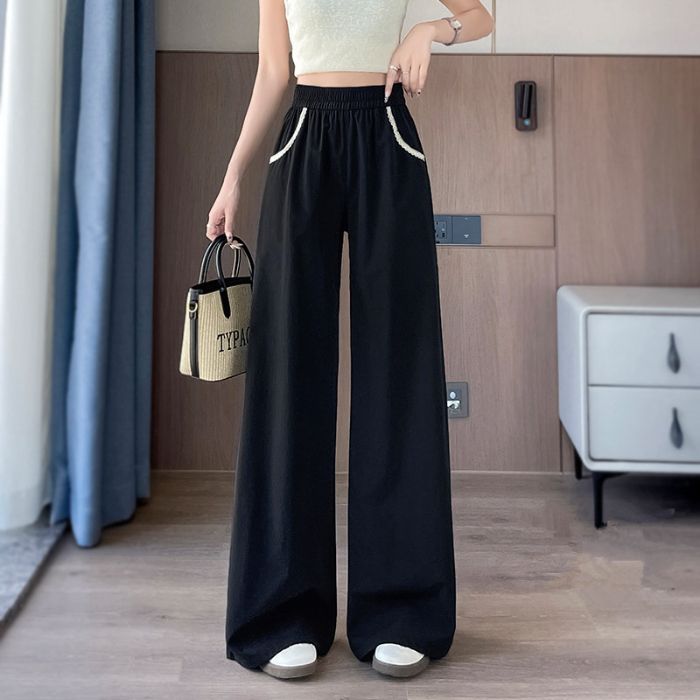 高级灰冰丝速干阔腿裤女夏季透气凉凉垂坠遮粗腿显瘦休闲裤 服裝批發女裝批發服飾貨源