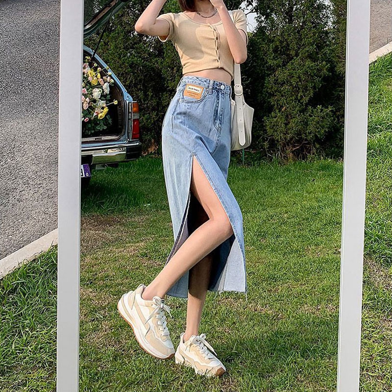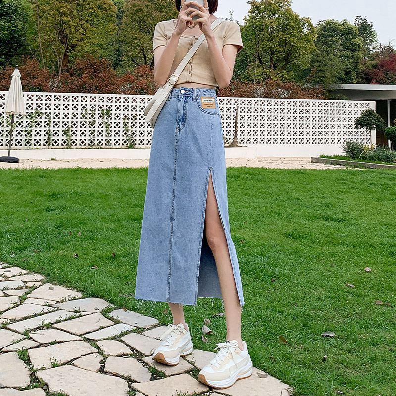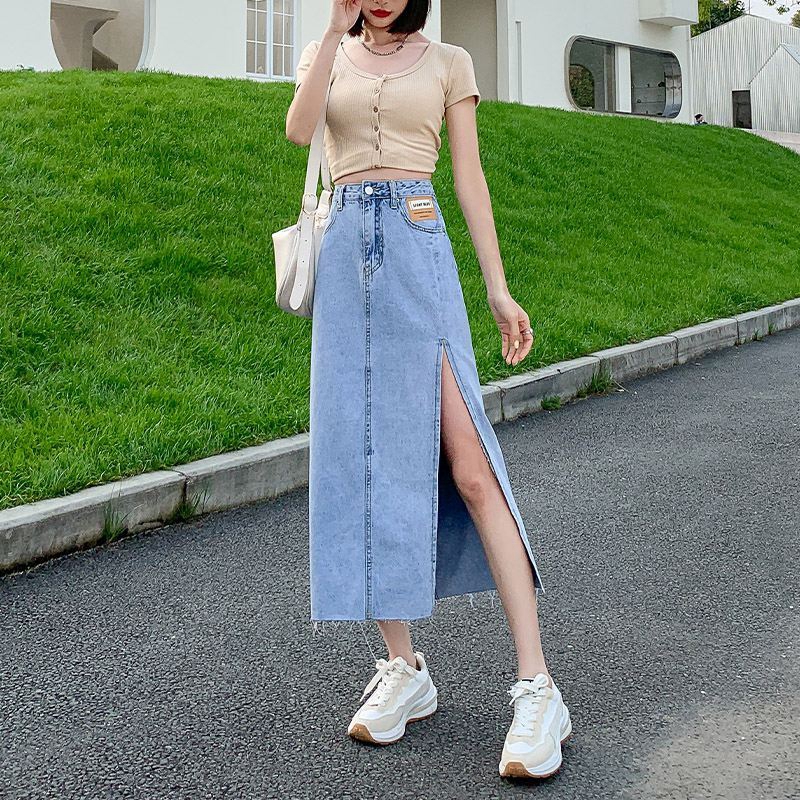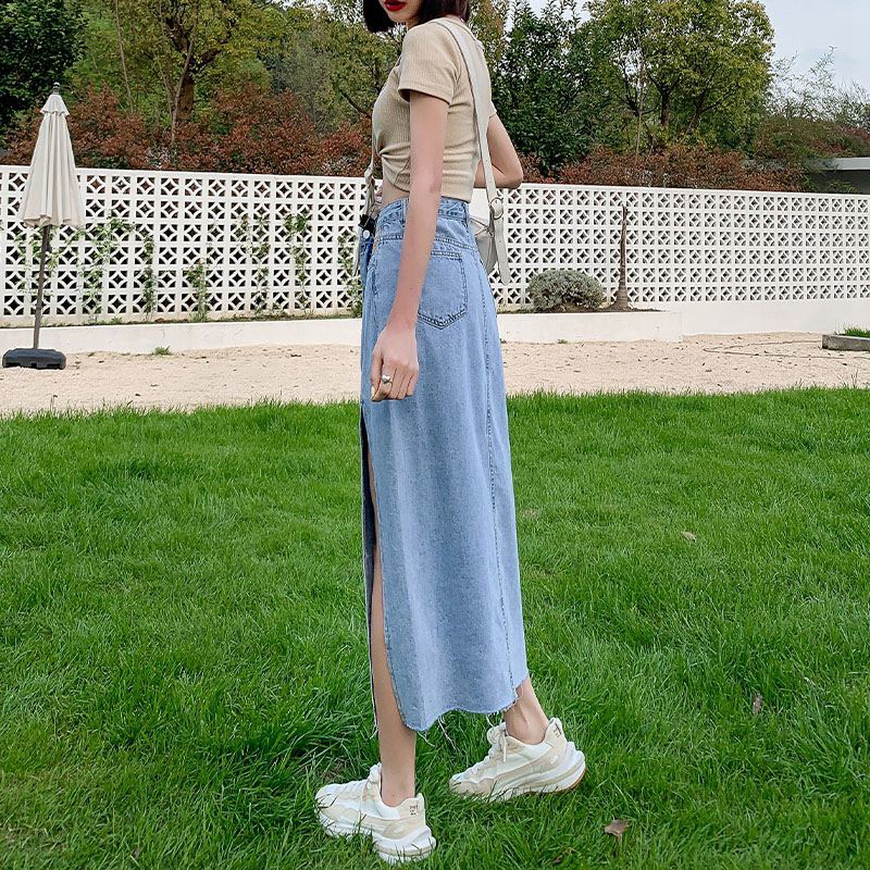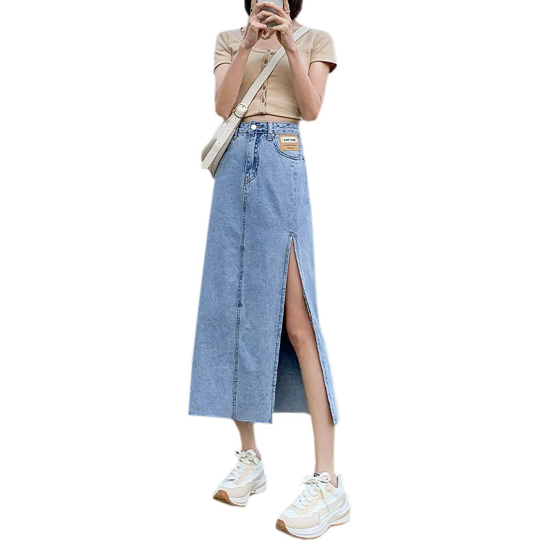 中长款半身裙女设计感ins风薄款夏小众高腰侧开叉包臀a字牛仔裙子 服裝批發女裝批發服飾貨源
