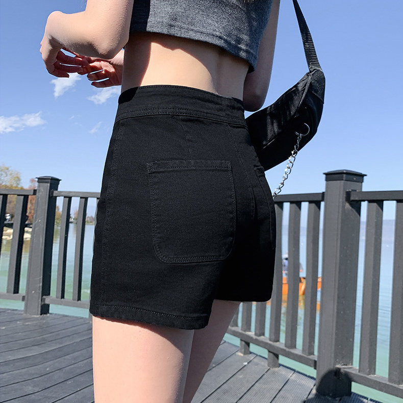 黑色牛仔短裤女夏装薄款ins高街辣妹修身弹力a字包臀高腰热裤子潮 服裝批發女裝批發服飾貨源