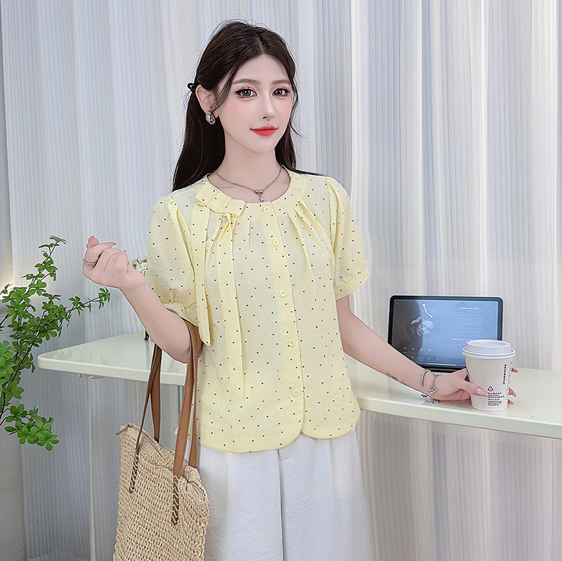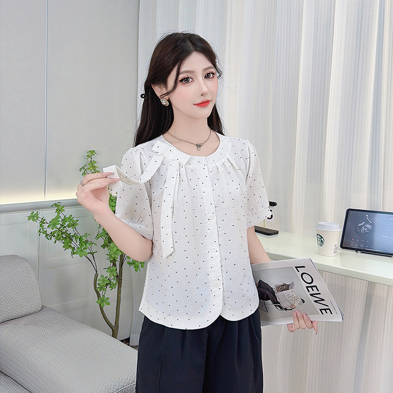 蝴蝶结爱心短袖衬衫女新款夏季休闲时尚百搭上衣修身显瘦小衫 服裝批發女裝批發服飾貨源