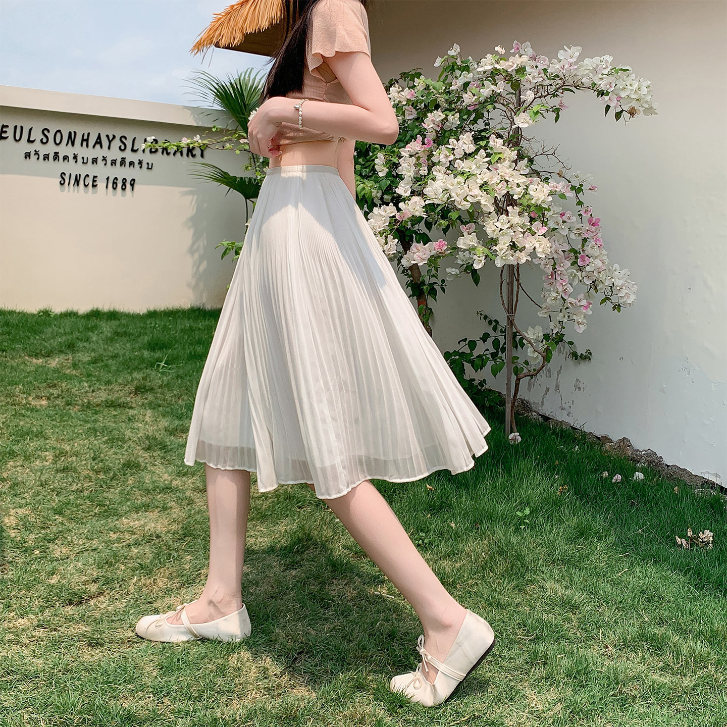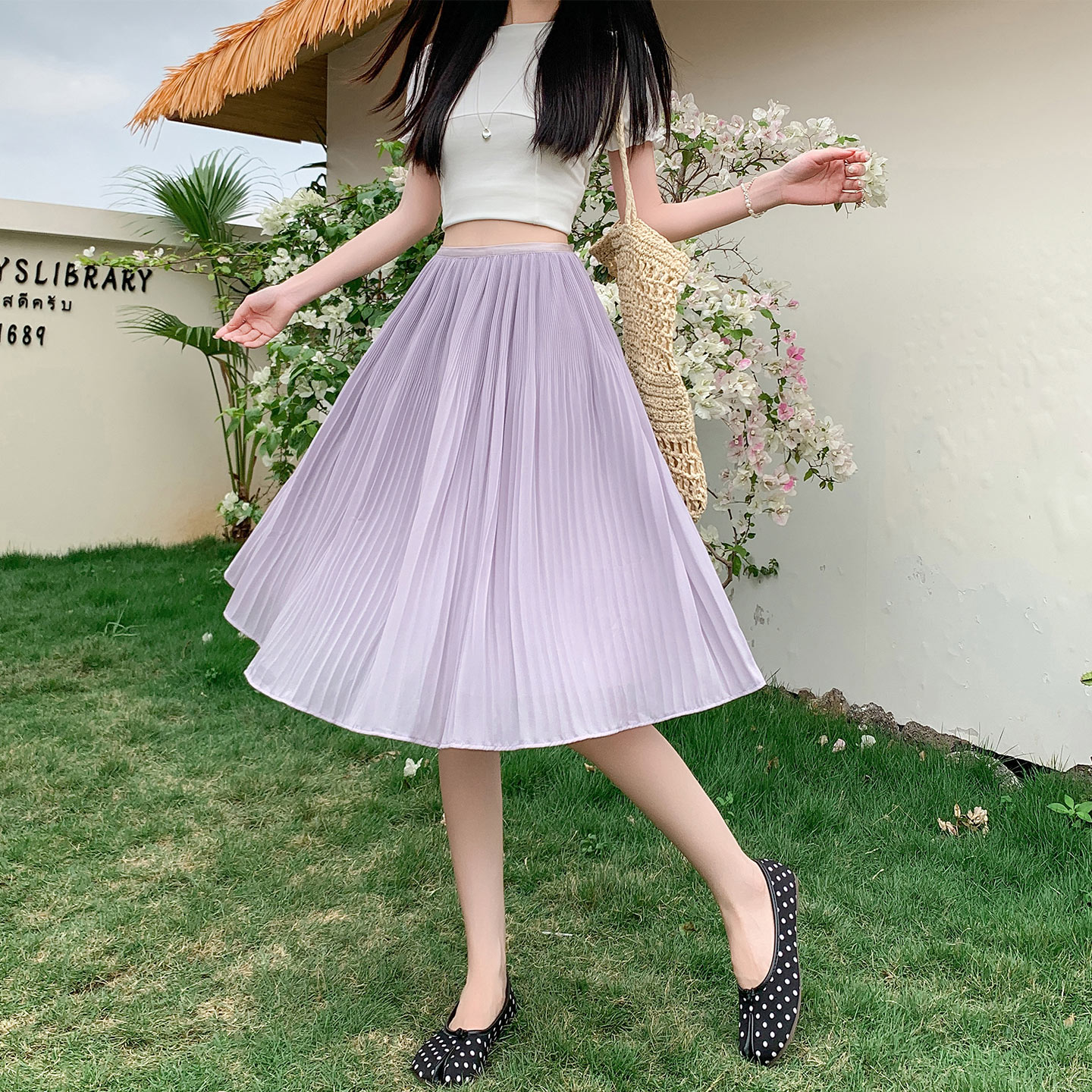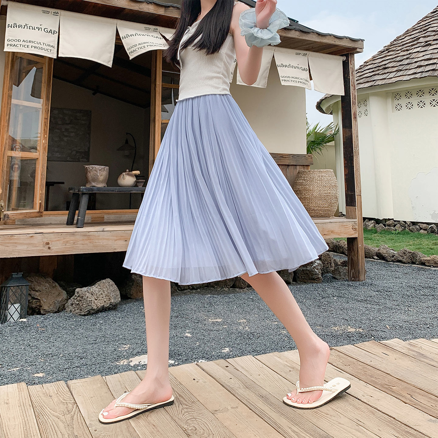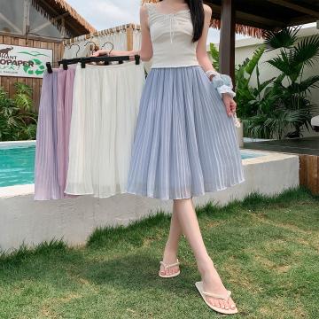 BY17797# 百褶裙a字半身裙女新款高腰显瘦垂坠感大摆雪纺中裙伞裙 服裝批發女裝批發服飾貨源
