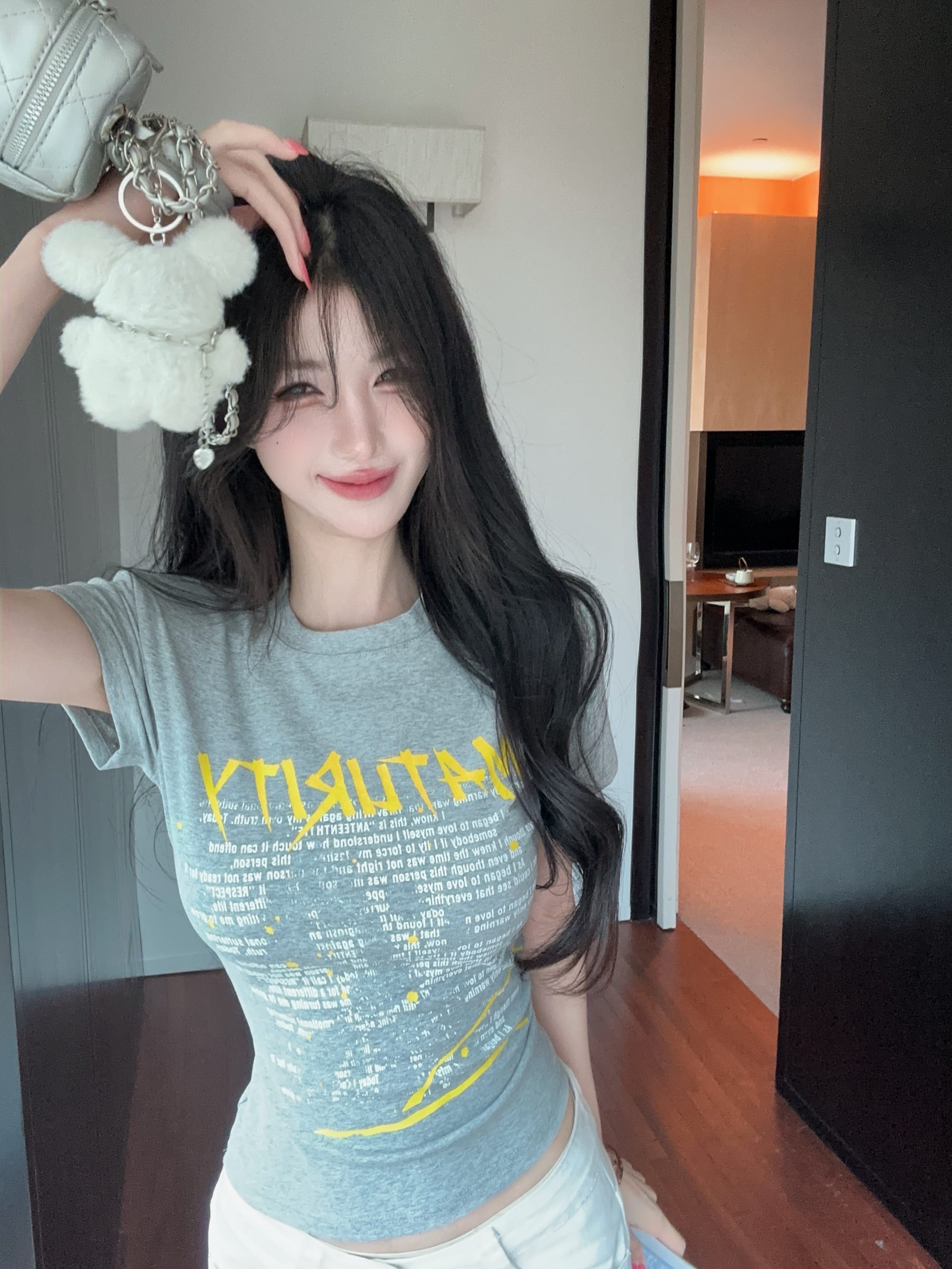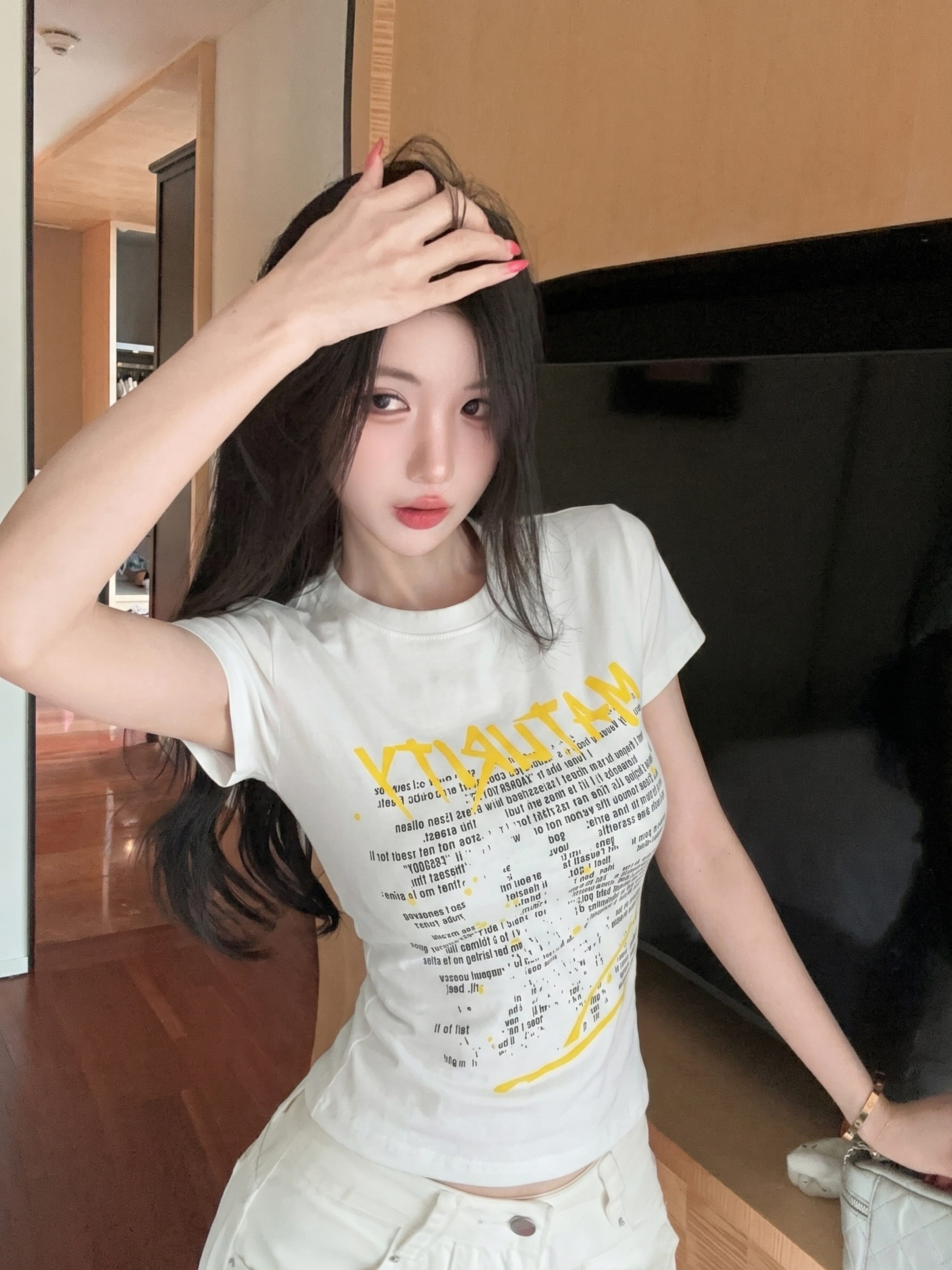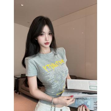 BY18000# 字母印花短袖T恤圆领百搭显瘦上衣 服裝批發女裝批發服飾貨源