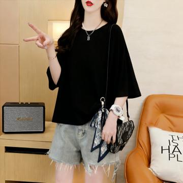 BY18017# 纯棉夏季丝巾系带宽松中长款短袖T恤女韩版外贸 服裝批發女裝批發服飾貨源