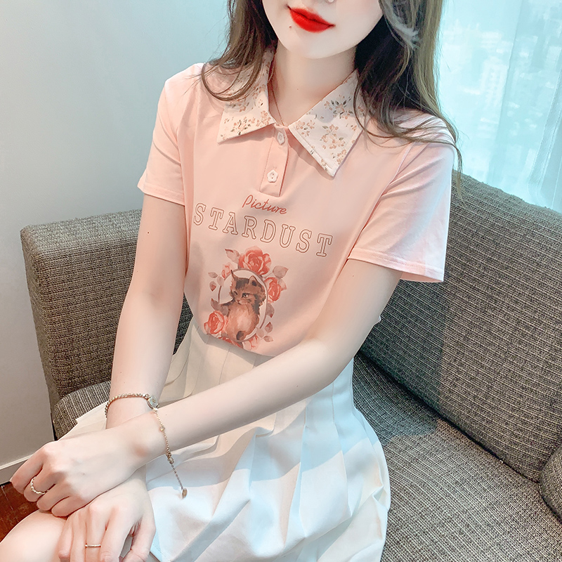BY18107# 夏季新款艺术绘画动物甜美标准POLO领套头短袖 服裝批發女裝批發服飾貨源