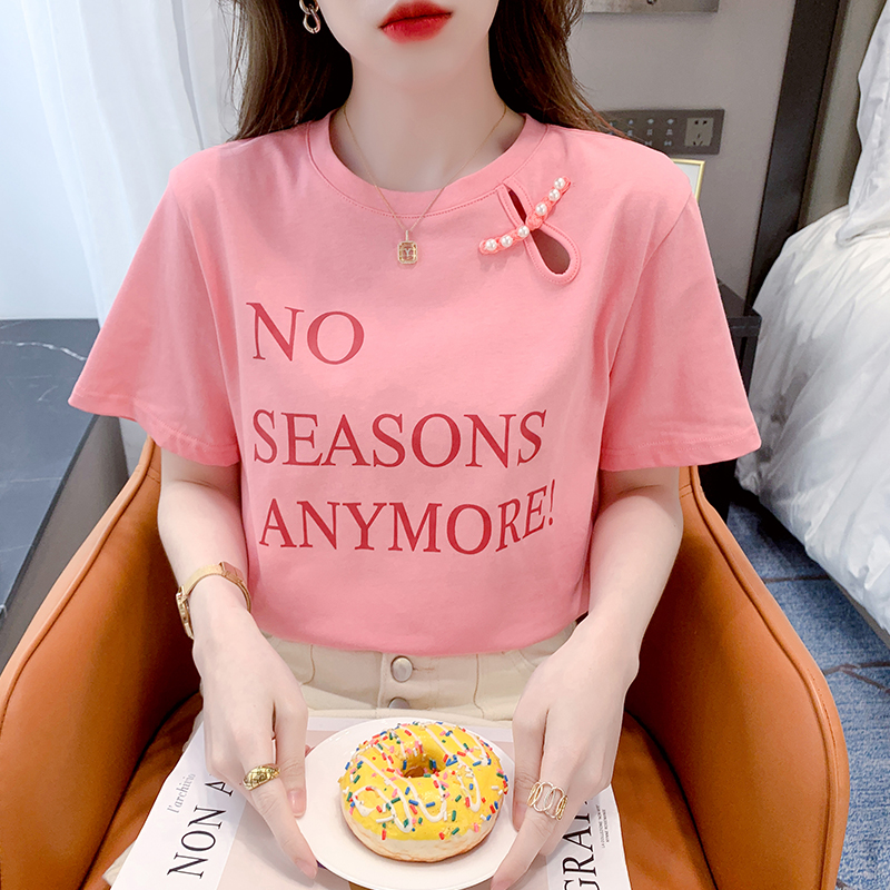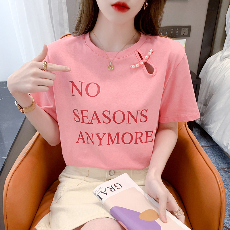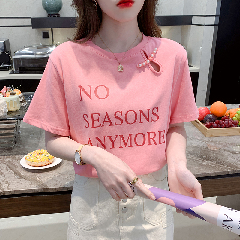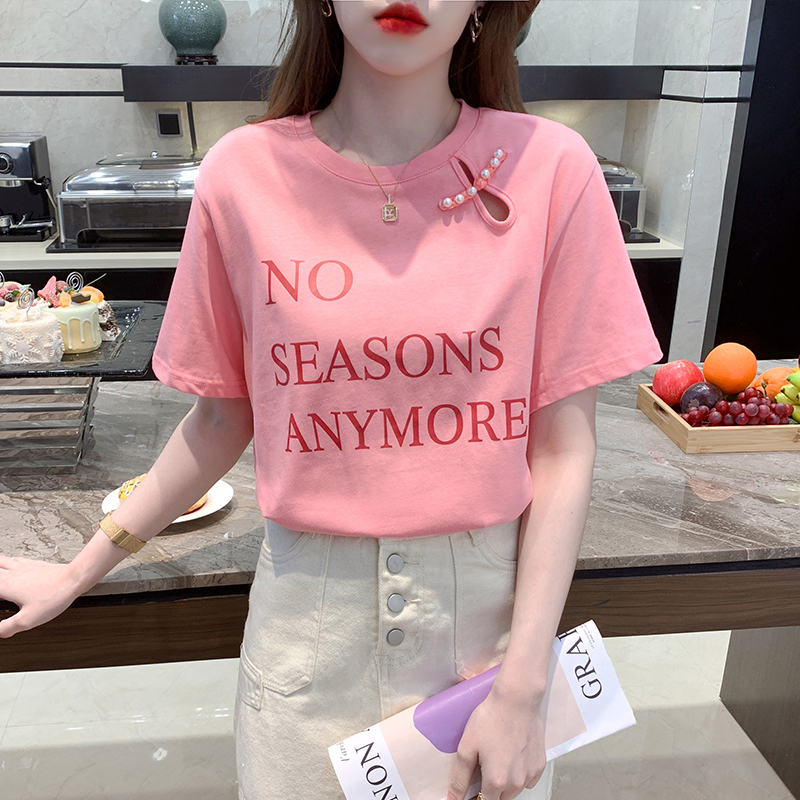 BY18110# 夏有货烫砖印花正肩夏新款花短袖纯棉T恤chic港味上衣ins 服裝批發女裝批發服飾貨源
