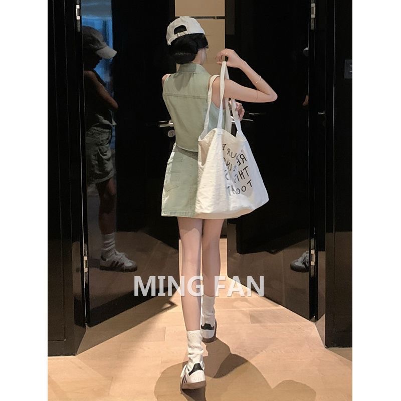 BY18158# 夏季新款女装辣妹polo领单排扣牛仔背心A字高腰短裙两件套 服裝批發女裝批發服飾貨源