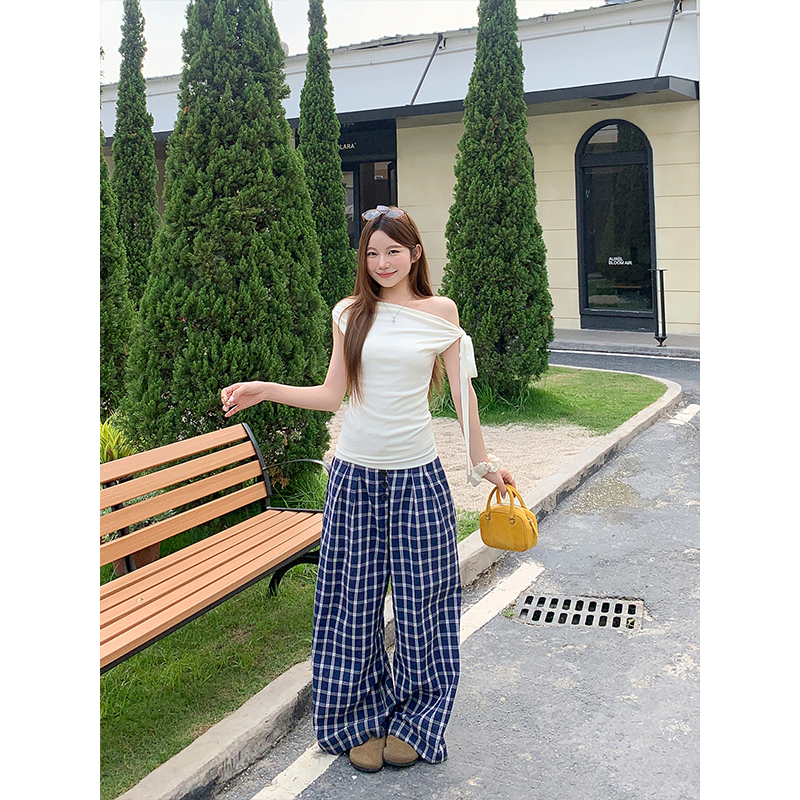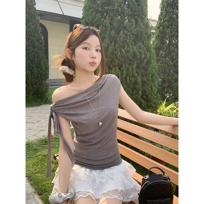 BY18330# 侧边绑带无袖背心女夏季新款韩系修身显瘦荡领纯欲风百搭上衣 服裝批發女裝批發服飾貨源