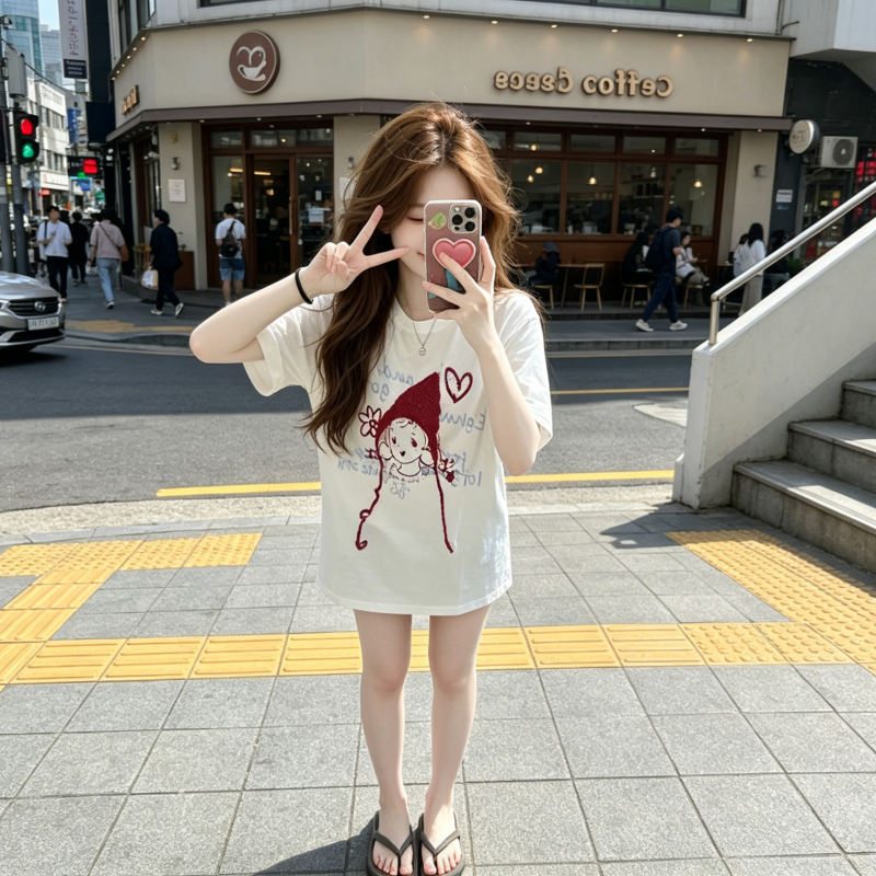 BY18433# 东大门夏季新款纯棉短袖T恤女宽松大码女装立体帽子印花上衣 服裝批發女裝批發服飾貨源