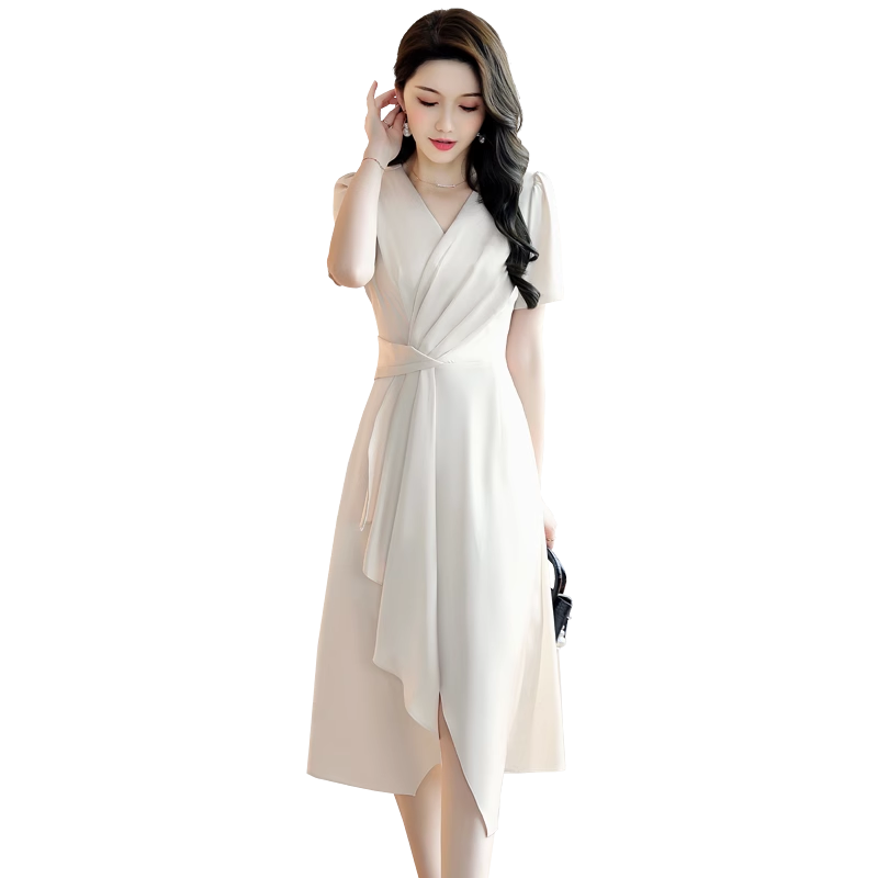 BY18620# 夏季连衣裙女新款高级感气质名媛洋气显瘦女装绝美V领裙子 服裝批發女裝批發服飾貨源