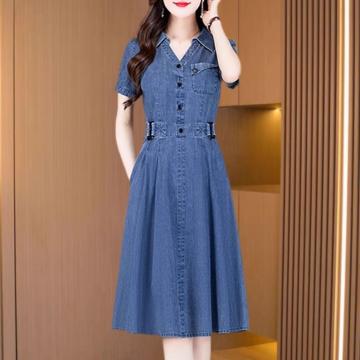 BY18626# 高贵牛仔裙连衣裙子女夏季小个子爆款欧货洋气质高端奢华高档品牌 服裝批發女裝批發服飾貨源