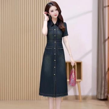 BY18627# 牛仔衬衫连衣裙女短袖夏季新款气质修身高级感今年流行裙子 服裝批發女裝批發服飾貨源