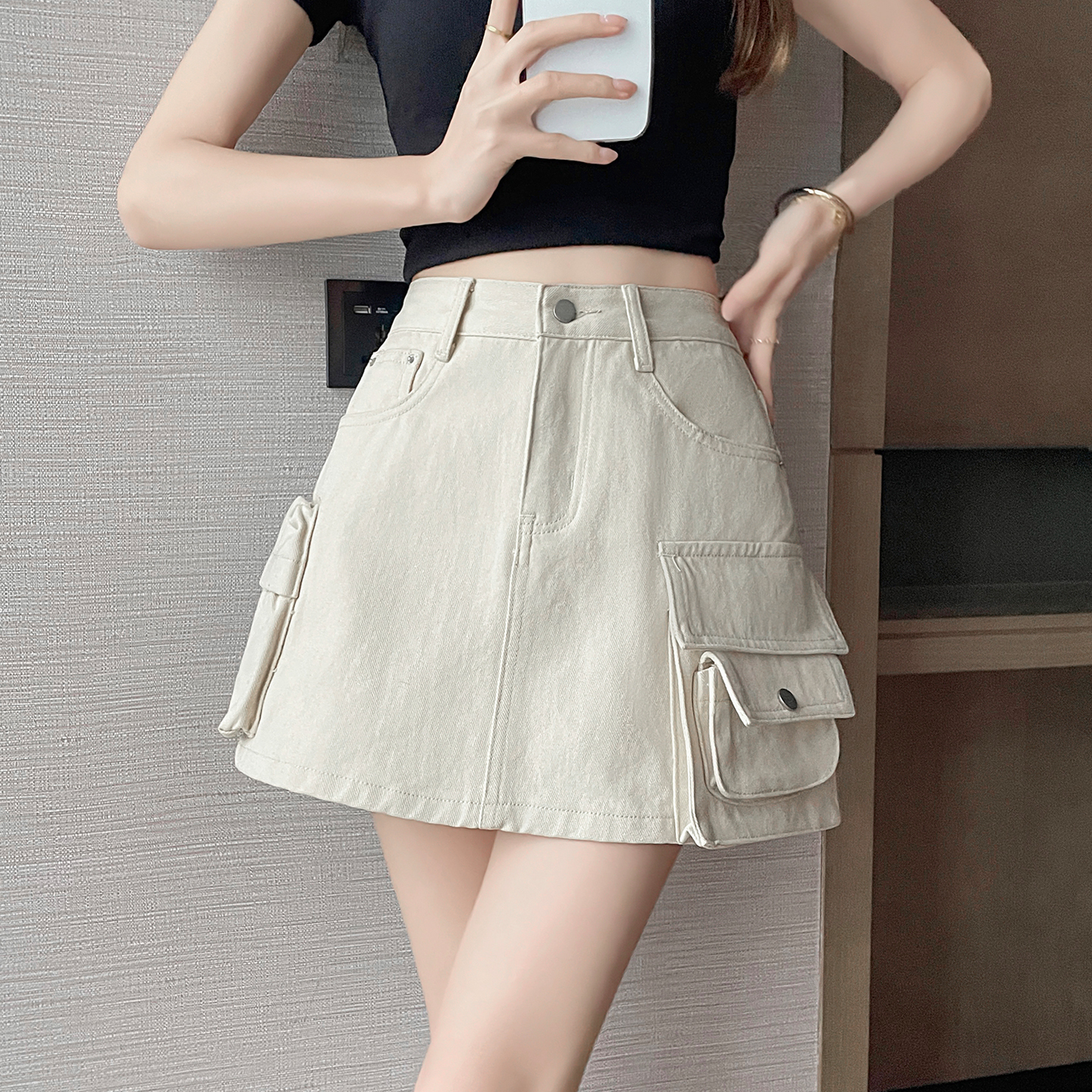 BY18965# 工装多口袋牛仔短裙女夏季新款高腰显瘦防走光包臀半身裙 服裝批發女裝批發服飾貨源