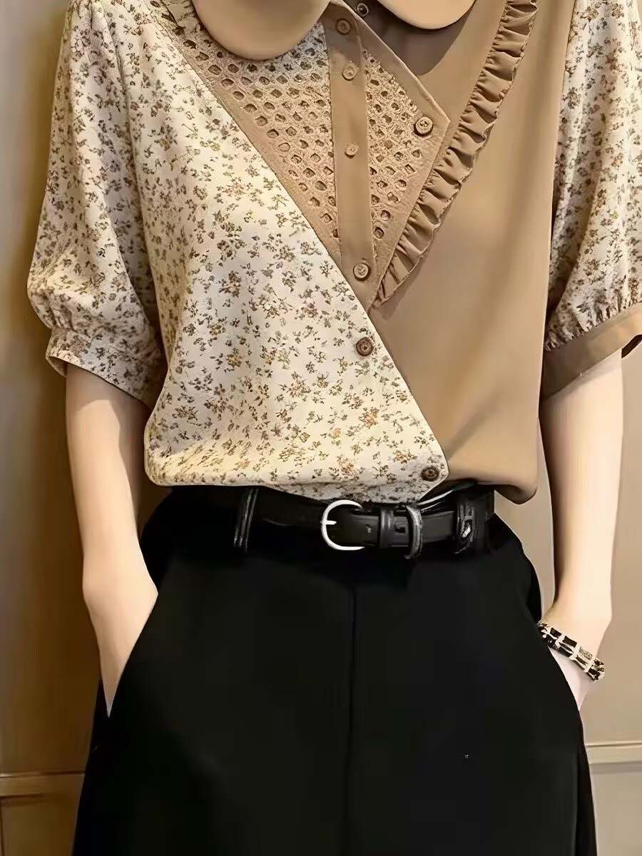 BY18998# 夏季新款独特百搭短袖上衣设计高级感衬衫绝美气质显瘦小衫 服裝批發女裝批發服飾貨源