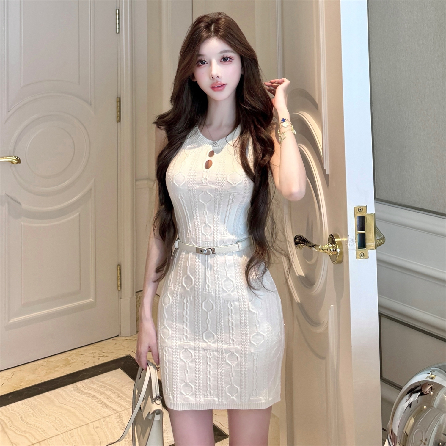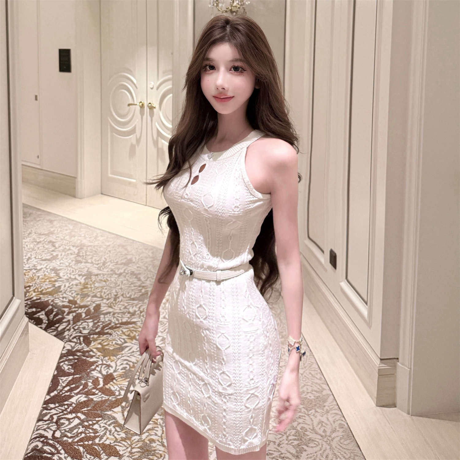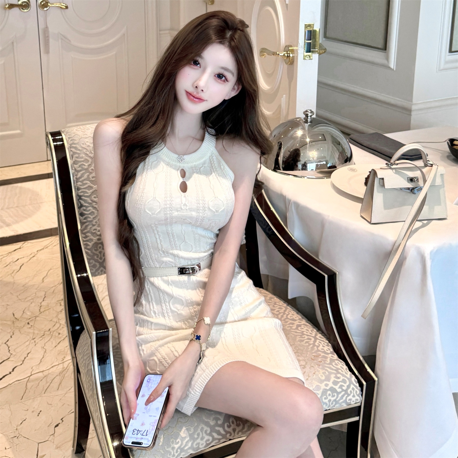 FA43433# 大马富人区镂空贵气千金气质挂脖针织修身包臀连衣短裙女 服裝批發女裝批發服飾貨源