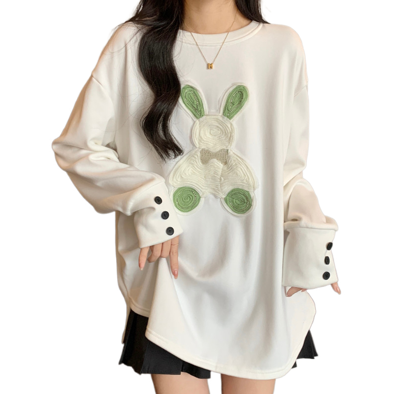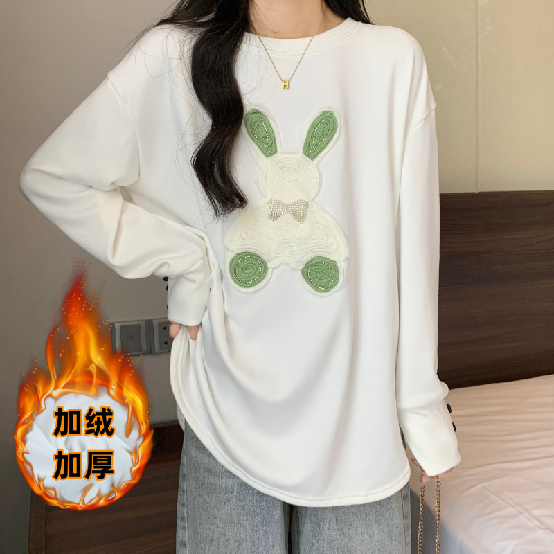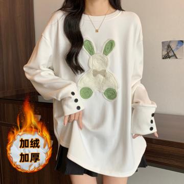 FA43765# 大码女装秋冬新款加绒加厚圆领宽松减龄卡通显瘦百搭休闲上衣 服裝批發女裝批發服飾貨源