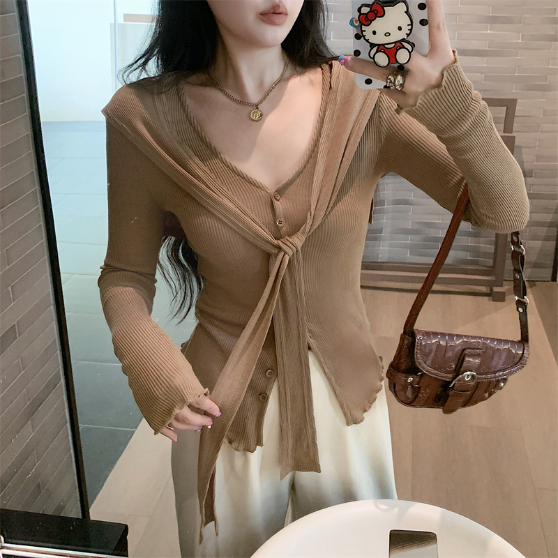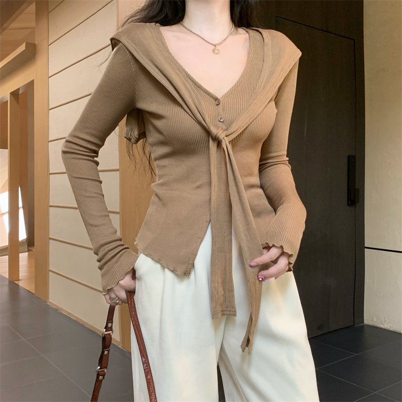 FA43958# 早秋韩系慵懒宽松别致长袖针织开衫女上衣搭配披肩两件套 服裝批發女裝批發服飾貨源