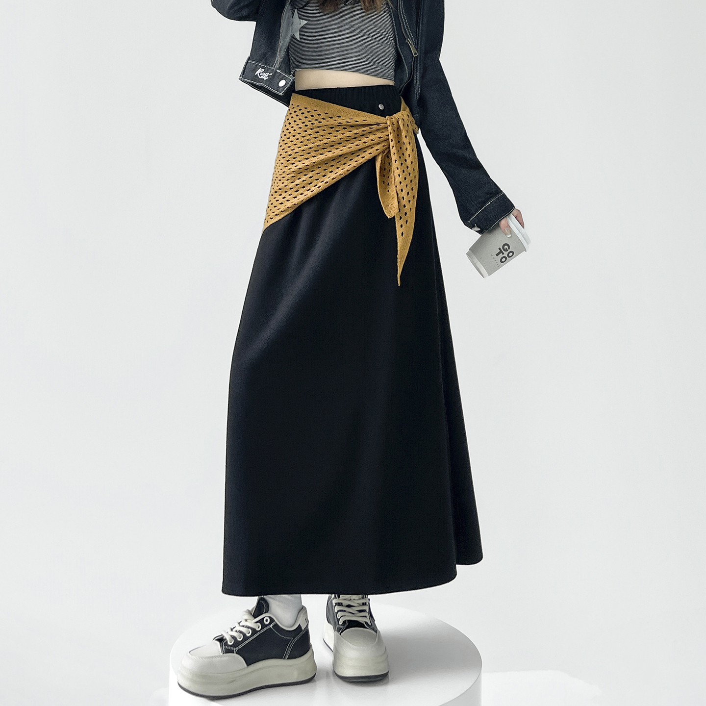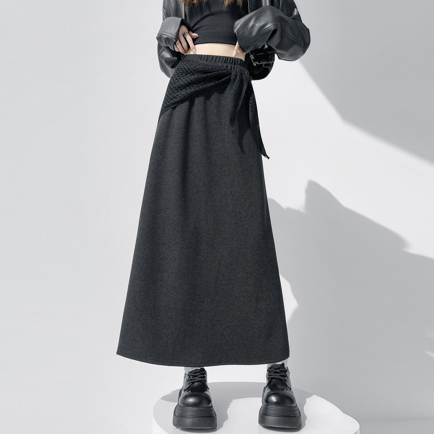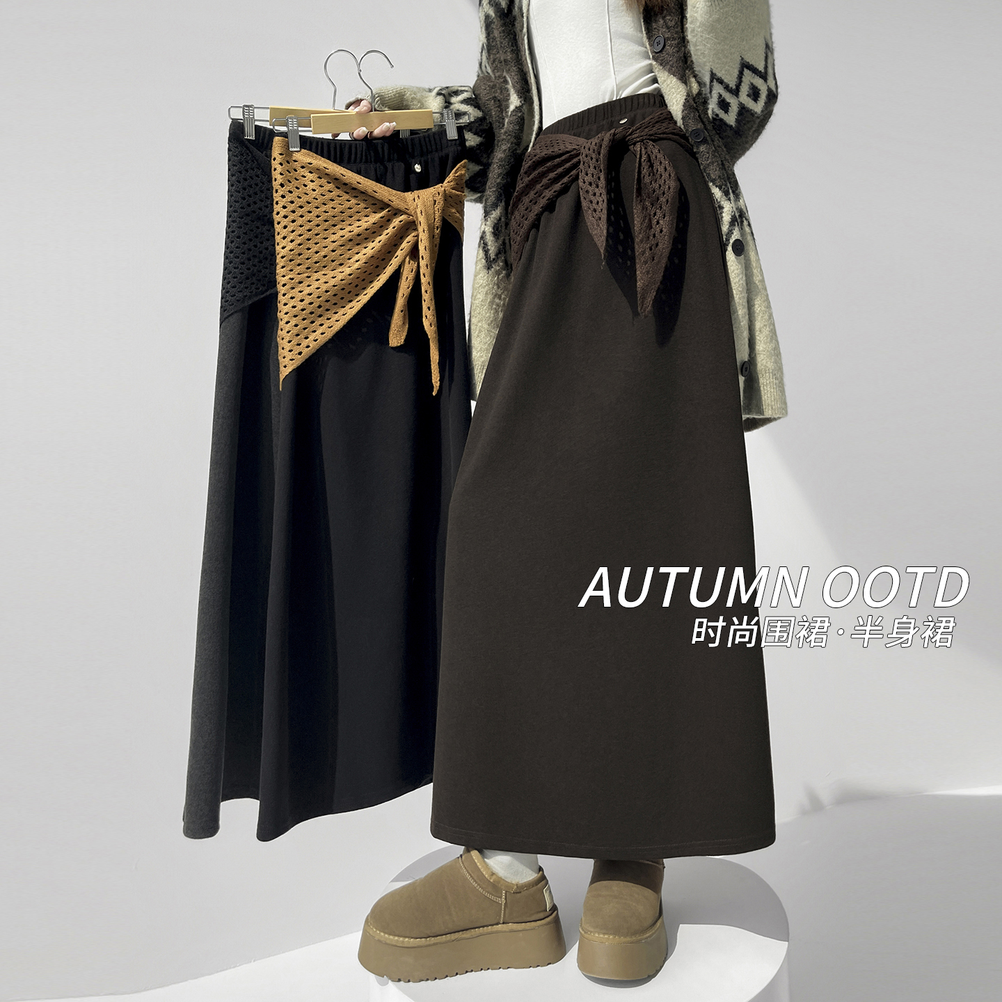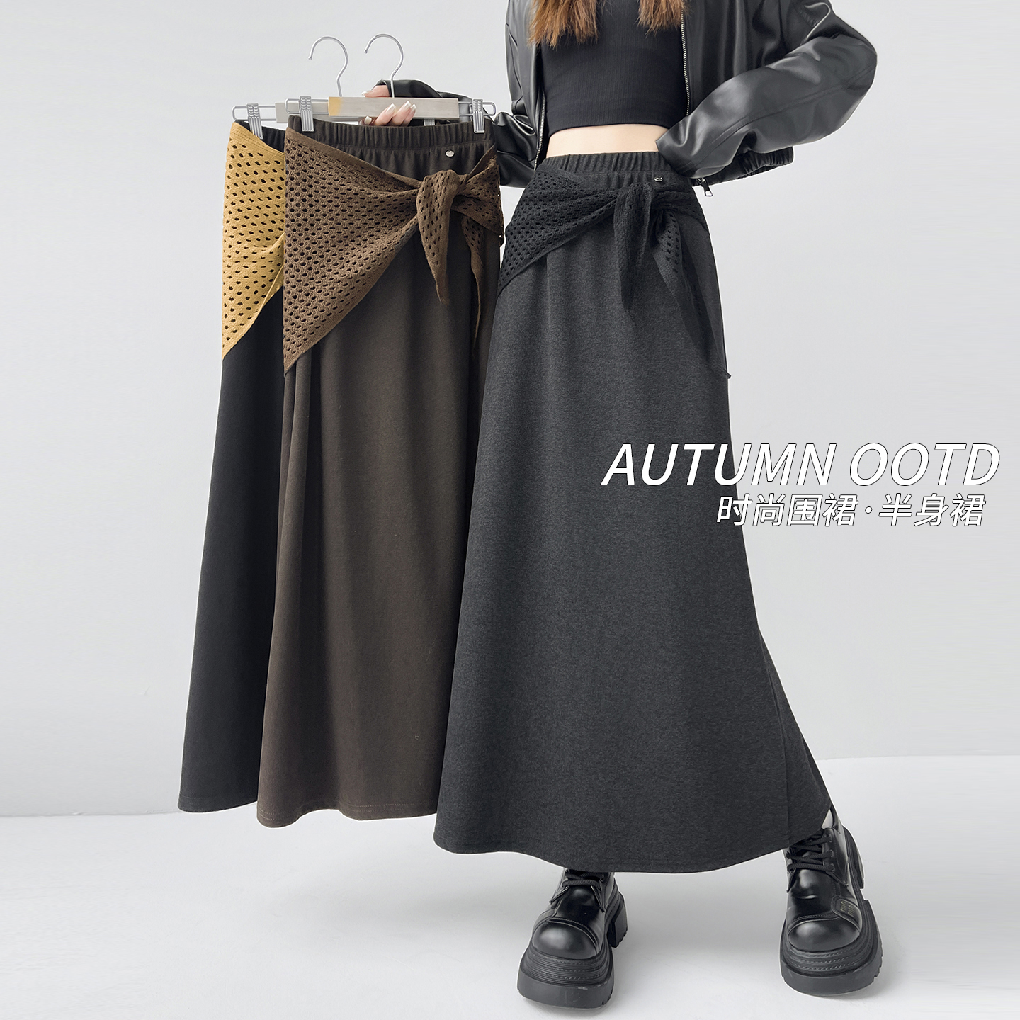 FA43982# 宽松弛感休闲遮肉半身裙女秋冬新款高腰梨形身材显瘦糯米裙长裙子 服裝批發女裝批發服飾貨源