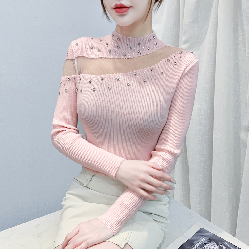 FA44097# 秋冬新款重工烫钻拼接镂空百搭洋气钉珠打底衫针织毛衣女 服裝批發女裝批發服飾貨源