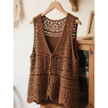 FA44103# 今年流行漂亮别致独特高级感上衣美拉德咖色镂空针织背心T恤女秋 服裝批發女裝批發服飾貨源