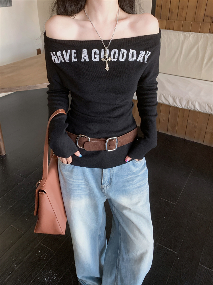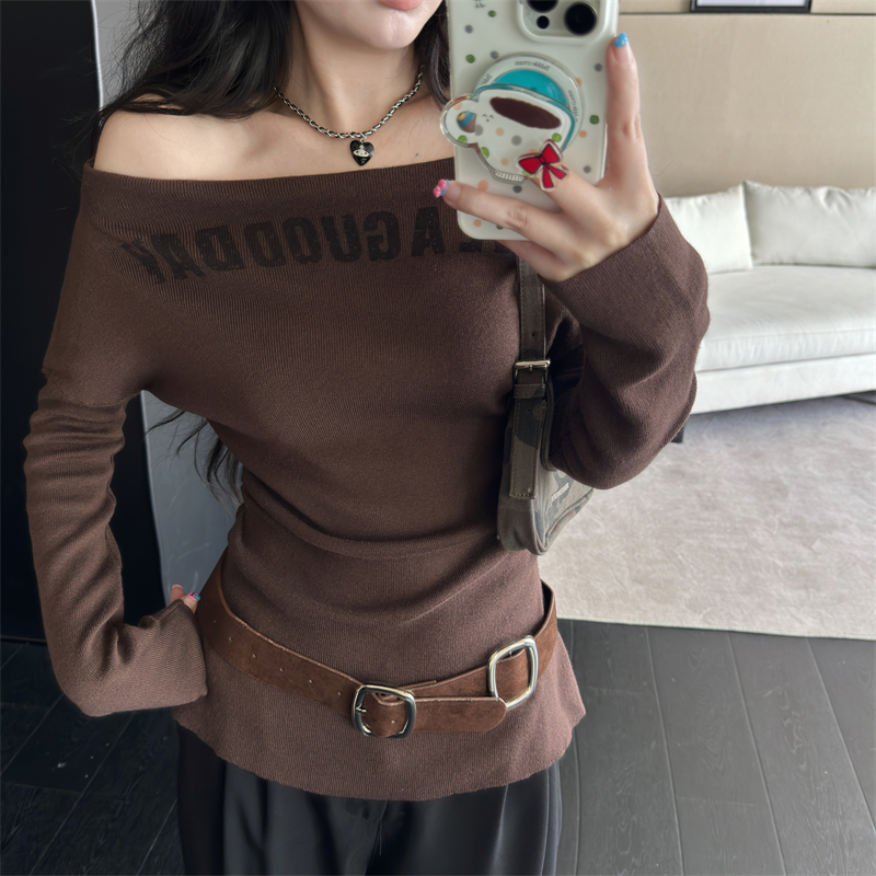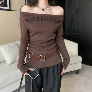 首页 > 毛衣、针织衫 > FA44267# 一字肩上衣高级感修身显瘦内搭针织打底衫女配腰带 服裝批發女裝批發服飾貨源