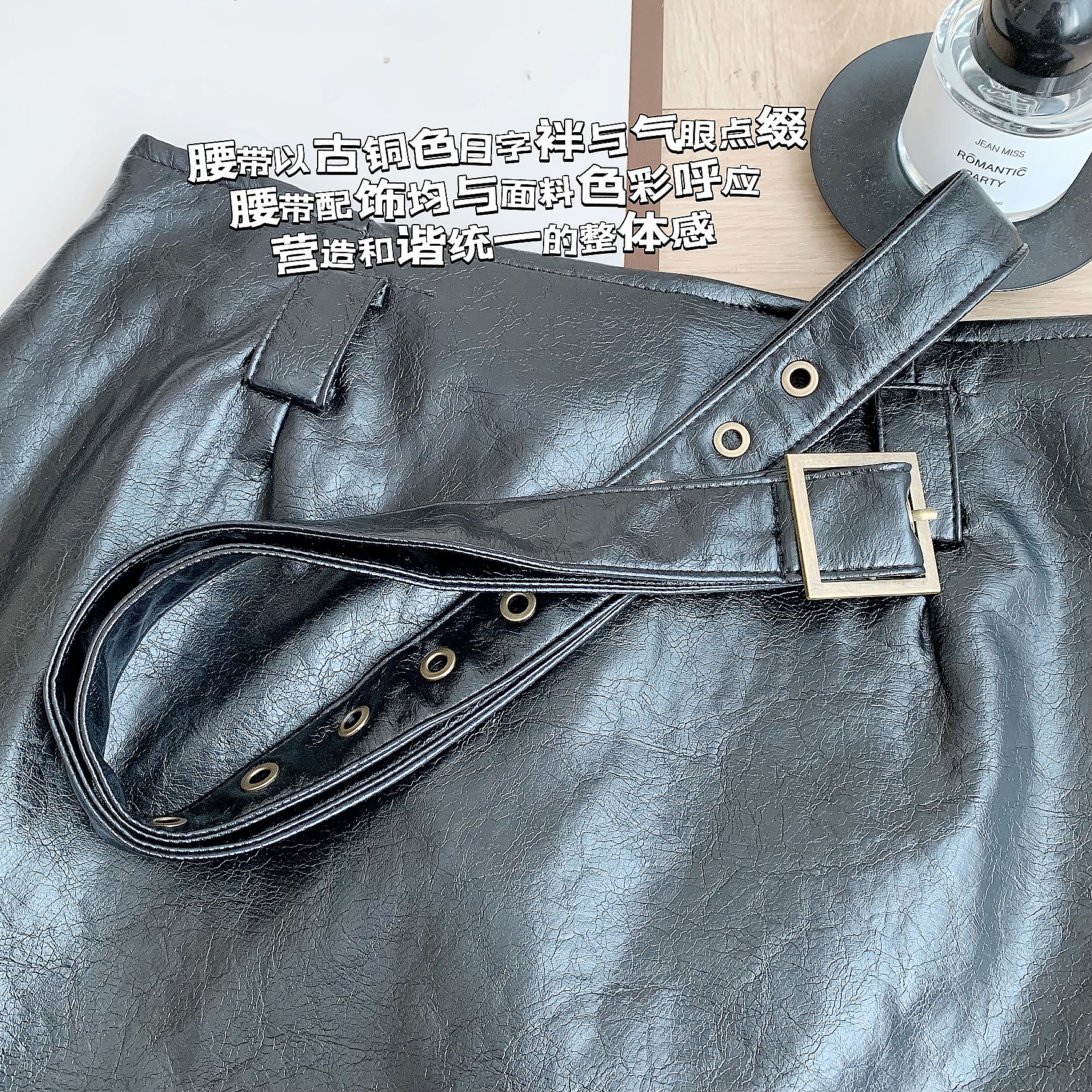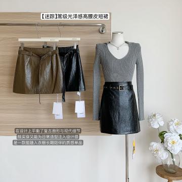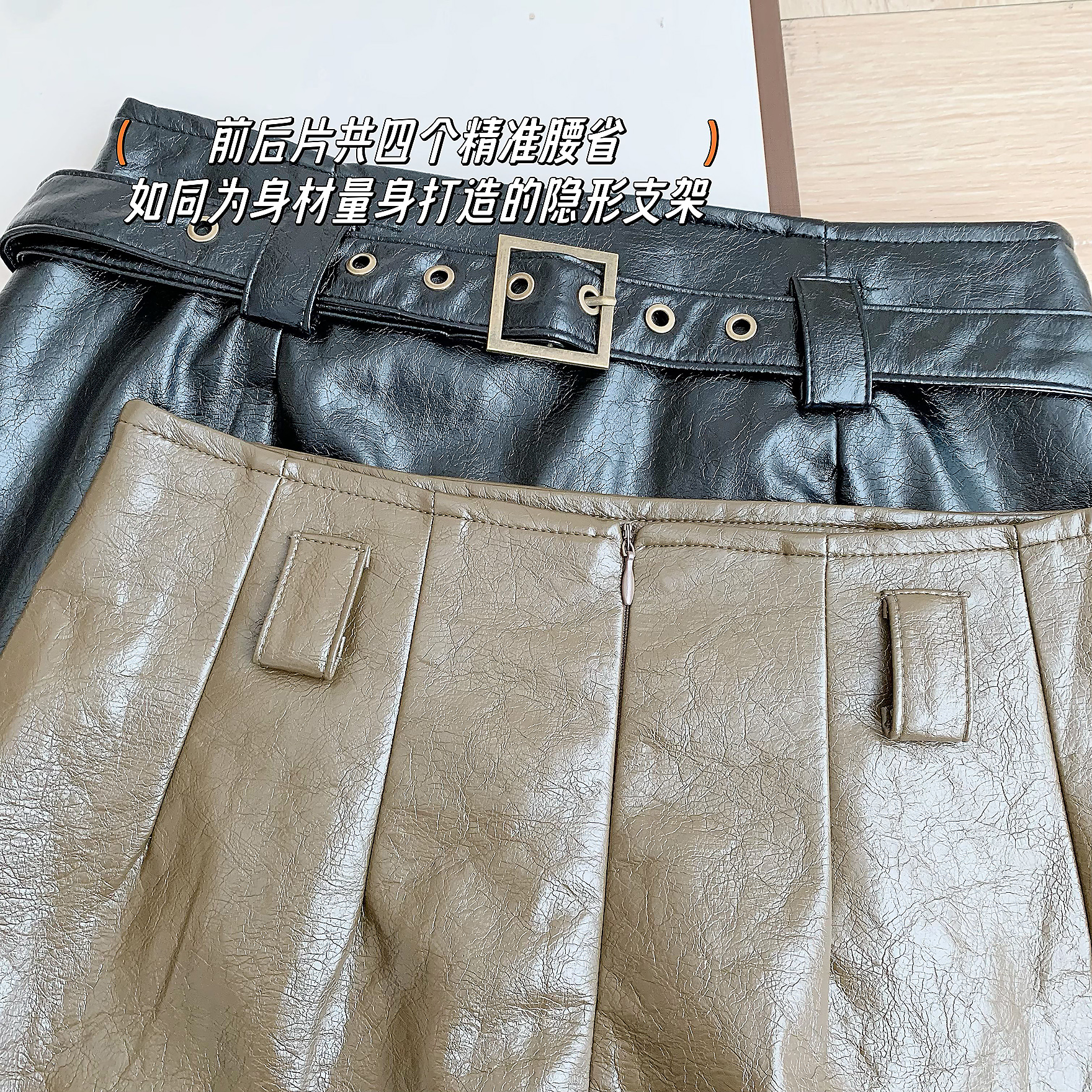 FA44441# 迷踪高级光泽感高腰PU皮短裙女秋设计感A字半身裙 服裝批發女裝批發服飾貨源