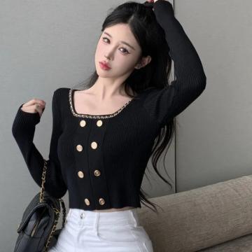 FA44446# 设计感方领修身显瘦针织打底衫性感辣妹上衣 服裝批發女裝批發服飾貨源
