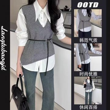 FA44464# 高级感气质通勤条纹衬衫女春季新款设计感小众长袖休闲上衣 服裝批發女裝批發服飾貨源