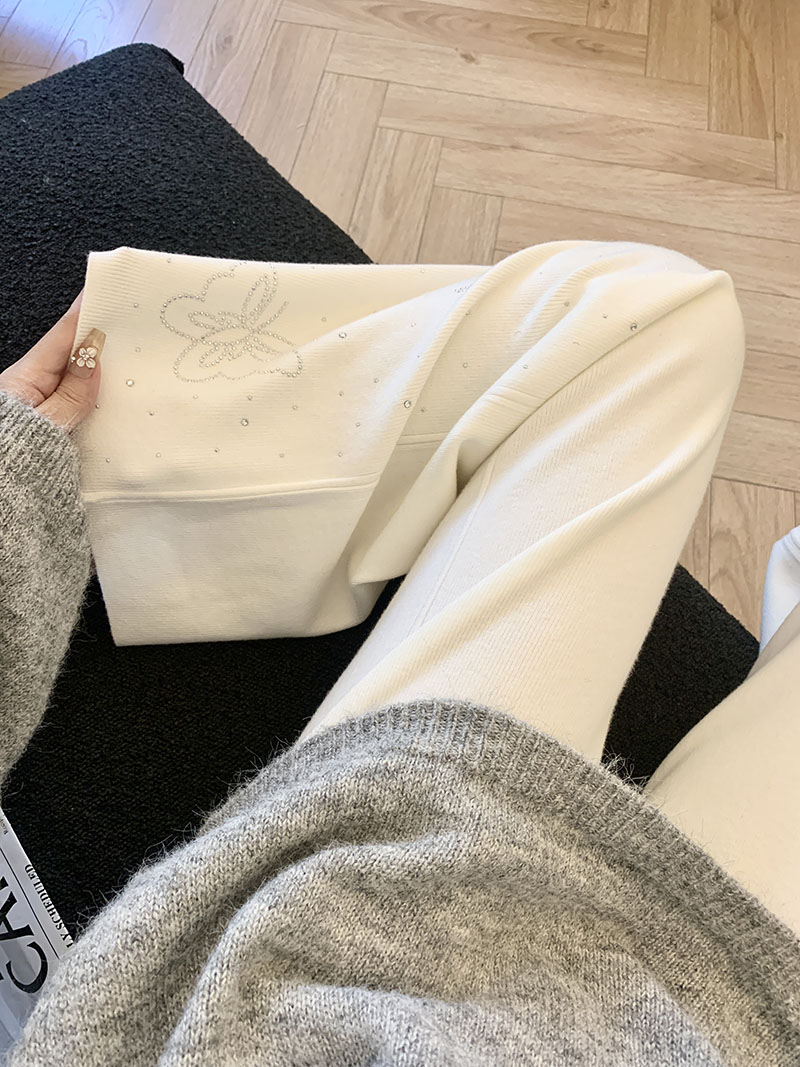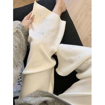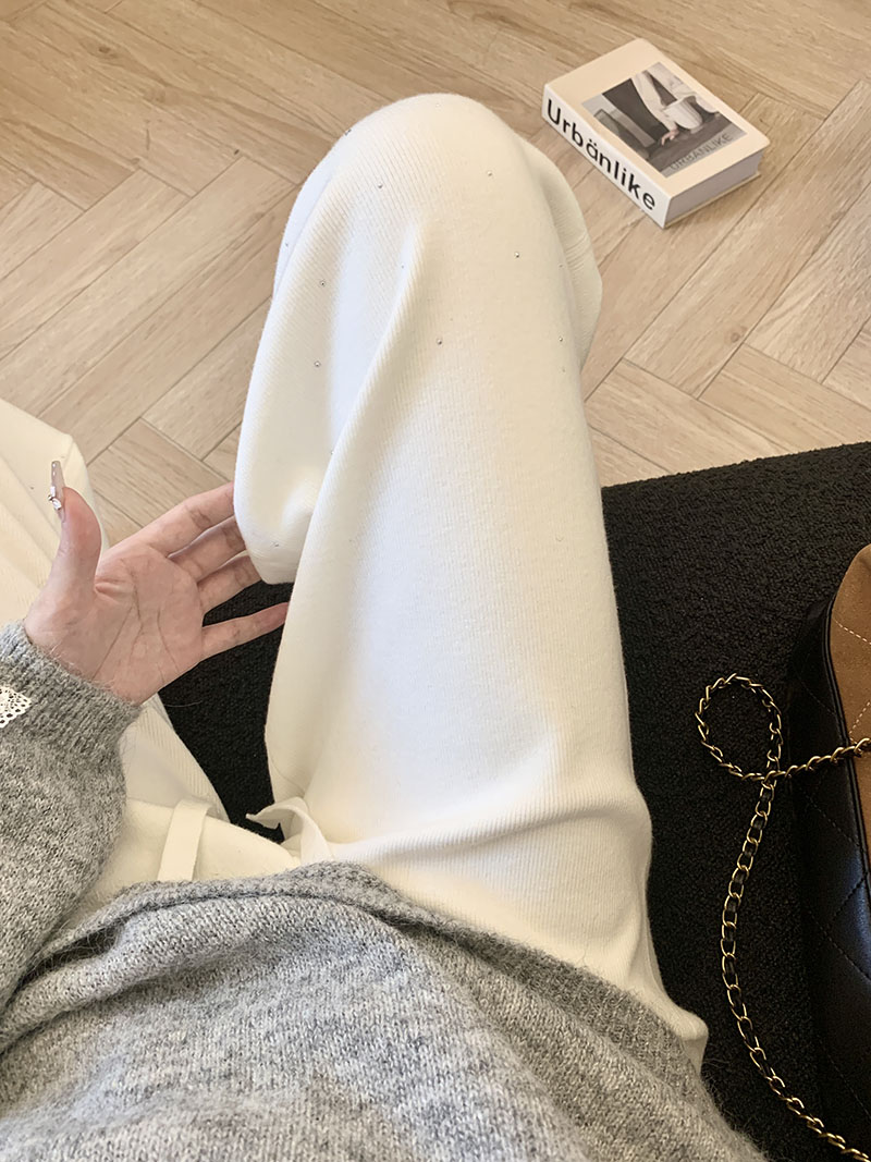 烫钻黑色针织阔腿裤女秋季休闲抽绳松紧高腰垂感直筒休闲裤 服裝批發女裝批發服飾貨源